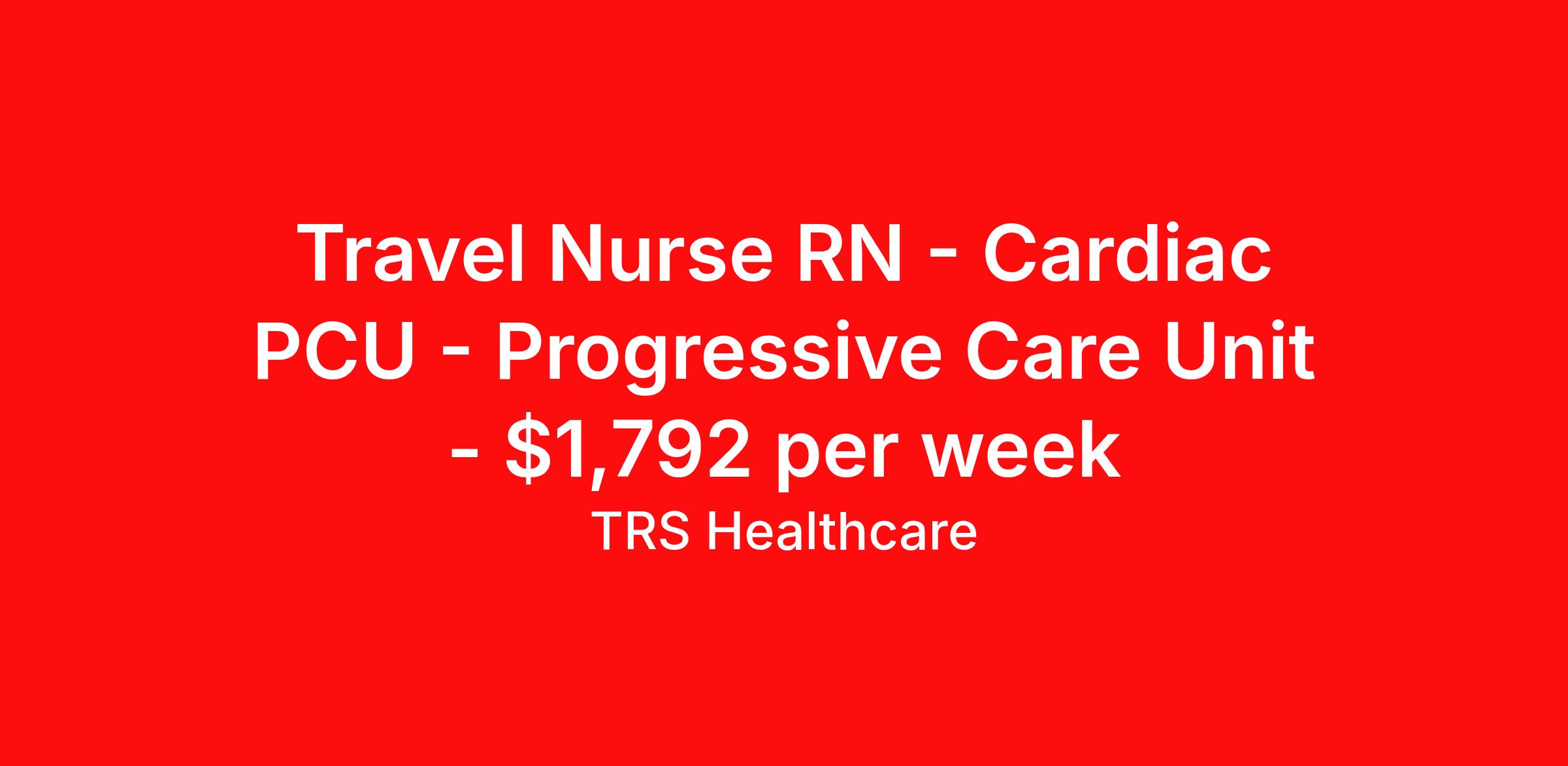 Travel Nurse RN - Cardiac PCU - Progressive Care Unit - $1,792 per week