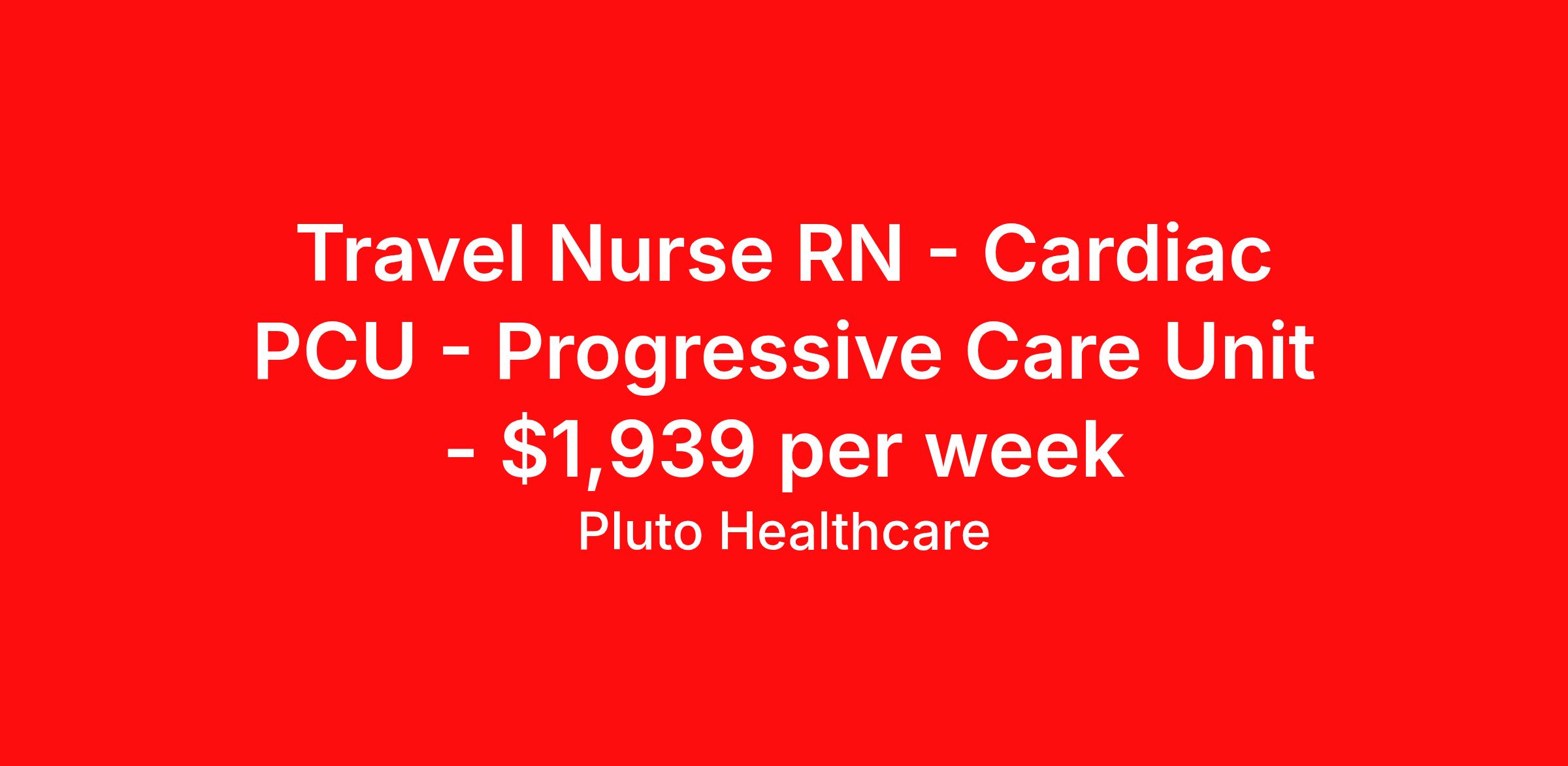 Travel Nurse RN - Cardiac PCU - Progressive Care Unit - $1,939 per week