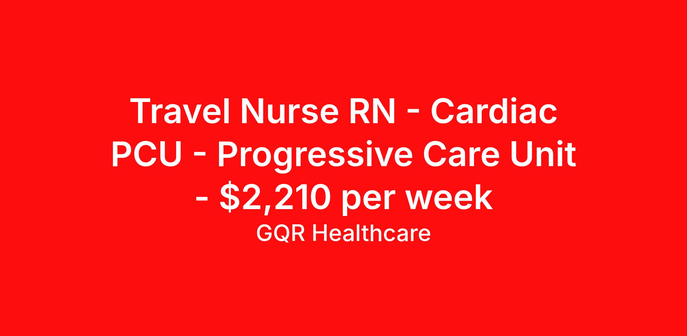 Travel Nurse RN - Cardiac PCU - Progressive Care Unit - $2,210 per week