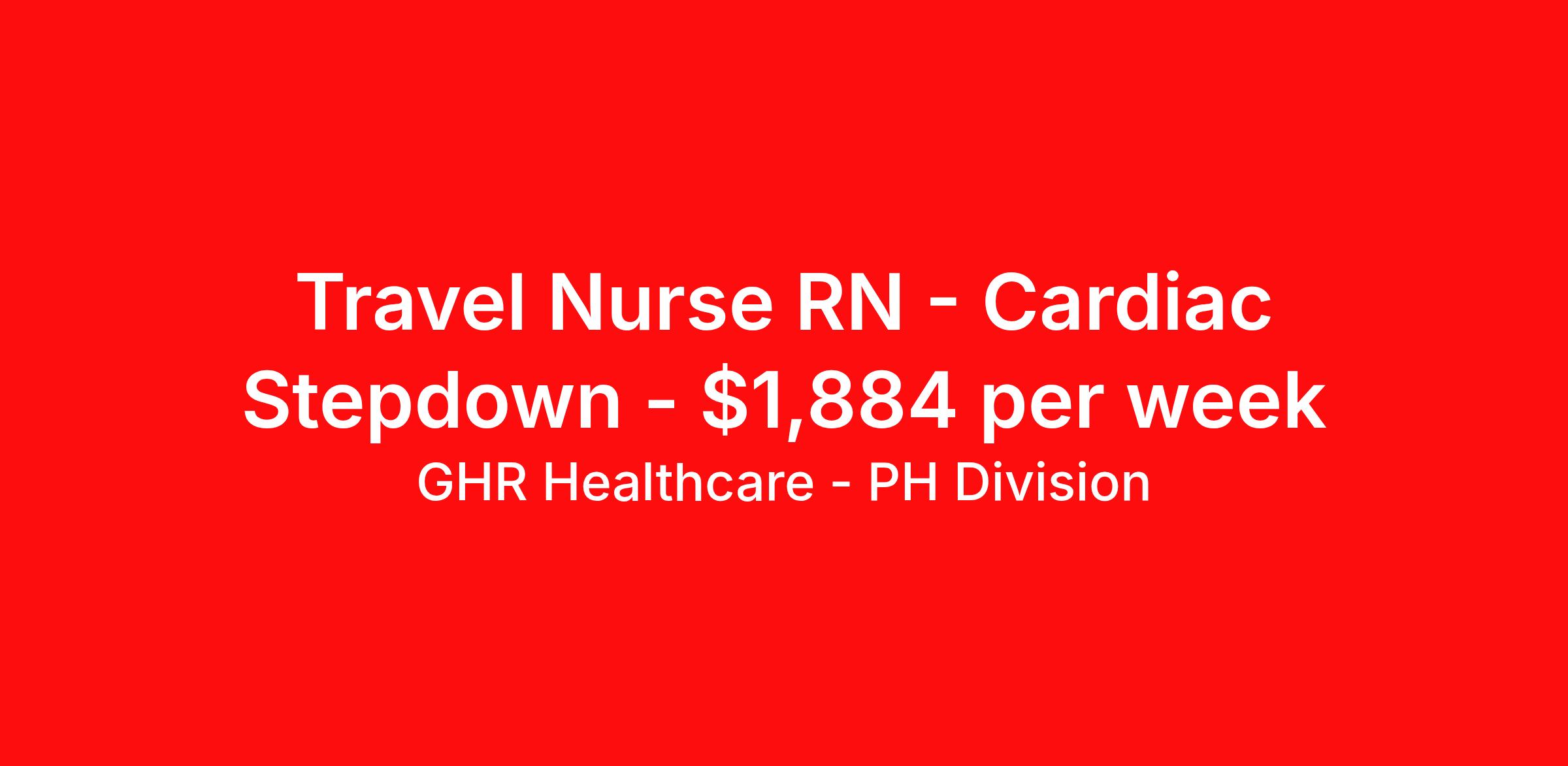 GHR Healthcare - PH Division is seeking a travel nurse RN Cardiac Stepdown for a travel nursing job in Washington, District of Columbia. Job Description & Requirements Specialty: Cardiac Stepdown Discipline: RN Start Date: 04/20/2026 Duration: 13 weeks 36 hours per week Shift: 12 hours Employment Type: Travel Cardiac Stepdown Registered Nurse (RN) – Travel Night Shift | Washington, DC (20007) Cardiac Stepdown RN – 13-week travel contract (night shift) in Washington, DC 20007. Telemetry/IMC experience required. Overview Join a dynamic healthcare team as a Cardiac Stepdown Registered Nurse (RN) on a 13-week travel contract in Washington, DC (zip code 20007). This night-shift telemetry/IMC nursing job is ideal for an experienced telemetry nurse or stepdown nurse seeking travel nurse opportunities in the nation’s capital. Enjoy the clinical variety of an ED boarder / stepdown setting while living near the Potomac River and DC attractions. Job Details Location: Washington, DC 20007 (Washington, DC nursing jobs / DC healthcare) Setting: Cardiac Stepdown / ED Boarder Unit (telemetry / intermediate care) Contract Duration: 13 weeks (April 20, 2026 – July 20, 2026) Shift: Night shift – 3 x 12-hour shifts per week (19:00 – 07:30) Hours per Week: 36 Weekend Requirement: Every other weekend Patient Ratio: 1:4–5 (telemetry/stepdown nursing ratio) Employment Type: Travel Contract (travel nurse / travel RN) Estimated Weekly Salary: $1,730 - $1,820 per week COVID-19 Vaccine: Not required Flu Vaccine: Required (no exemptions) Scrubs: Any color Qualifications / Job Requirements Minimum 2 years of recent Cardiac Stepdown, Telemetry, or IMC RN experience At least 1 prior travel assignment (preferred travel nurse experience) Active DC RN license (pending license accepted with proof; license must be in hand prior to start) Certifications required: ACLS, BLS, NIHSS Successful completion of Relias EKG Rhythm Interpretation Exam (minimum 80% overall; 100% on lethal rhythms) Experience with Cerner electronic charting system and Pyxis medication systems Ability to float to units of equivalent or lower acuity as needed Two supervisor references required Clinical Responsibilities Provide comprehensive care to admitted patients boarding in the ED while awaiting inpatient beds Continuous cardiac telemetry monitoring and dysrhythmia recognition/management (telemetry nurse responsibilities) Administer and titrate IV drips (including insulin), manage enteral feeding tubes, and provide pre/post hemodialysis care Perform IV therapy, phlebotomy, and manage peripheral and central lines Implement isolation precautions and PPE protocols for infection control Utilize Cerner for charting and Pyxis for medication administration with accurate documentation Collaborate with interdisciplinary teams: Physical Therapy, Respiratory Therapy, Radiology, Social Services, and Pharmacy Float to other units as required and actively participate on rapid response/code teams Care for diverse diagnoses including neurology/stroke, orthopedics, oncology, transplant, end-stage liver/kidney disease, and gastroenterology Why Join Our Team Hands-on cardiac and telemetry experience in a high-volume, fast-paced ED boarder/stepdown environment Opportunity to advance clinical skills and work with an interdisciplinary team Explore Washington, DC—historic sites, dining, and cultural attractions near zip code 20007 Supportive work environment focused on patient safety and quality care Ready to advance your career as a travel Cardiac Stepdown RN in Washington, DC? Apply now to be considered for this travel nurse opportunity. Please submit your resume, current DC RN license (or proof of pending licensure), certifications, and two supervisor references for immediate consideration. Join our healthcare team today! Benefits 401K with Matching, Healthcare, Dental and Vision Equal Opportunity We are an equal opportunity employer and value diversity across our organization. We do not discriminate on the basis of race, religion, color, national origin, gender, sexual orientation, age, marital status, veteran status, or disability status. Planet Healthcare Job ID 467071. Pay package is based on 12 hour shifts and 36 hours per week (subject to confirmation) with tax-free stipend amount to be determined. Posted job title: Cardiac Stepdown About GHR Healthcare - PH Division For over 30 years, GHR Healthcare has been the bridge between healthcare professionals and the facilities that need them nationwide. We're committed to uncovering your ideal fit, supported by GHR's dedication to competitive compensation, transparent communication, and a devoted team that genuinely cares about your career journey. You can trust us to stand by your side as your advocate, confidante, and partner in advancing your career. At GHR, care and consideration are at the heart of everything we do. Visit ghrhealthcare.com to learn more.