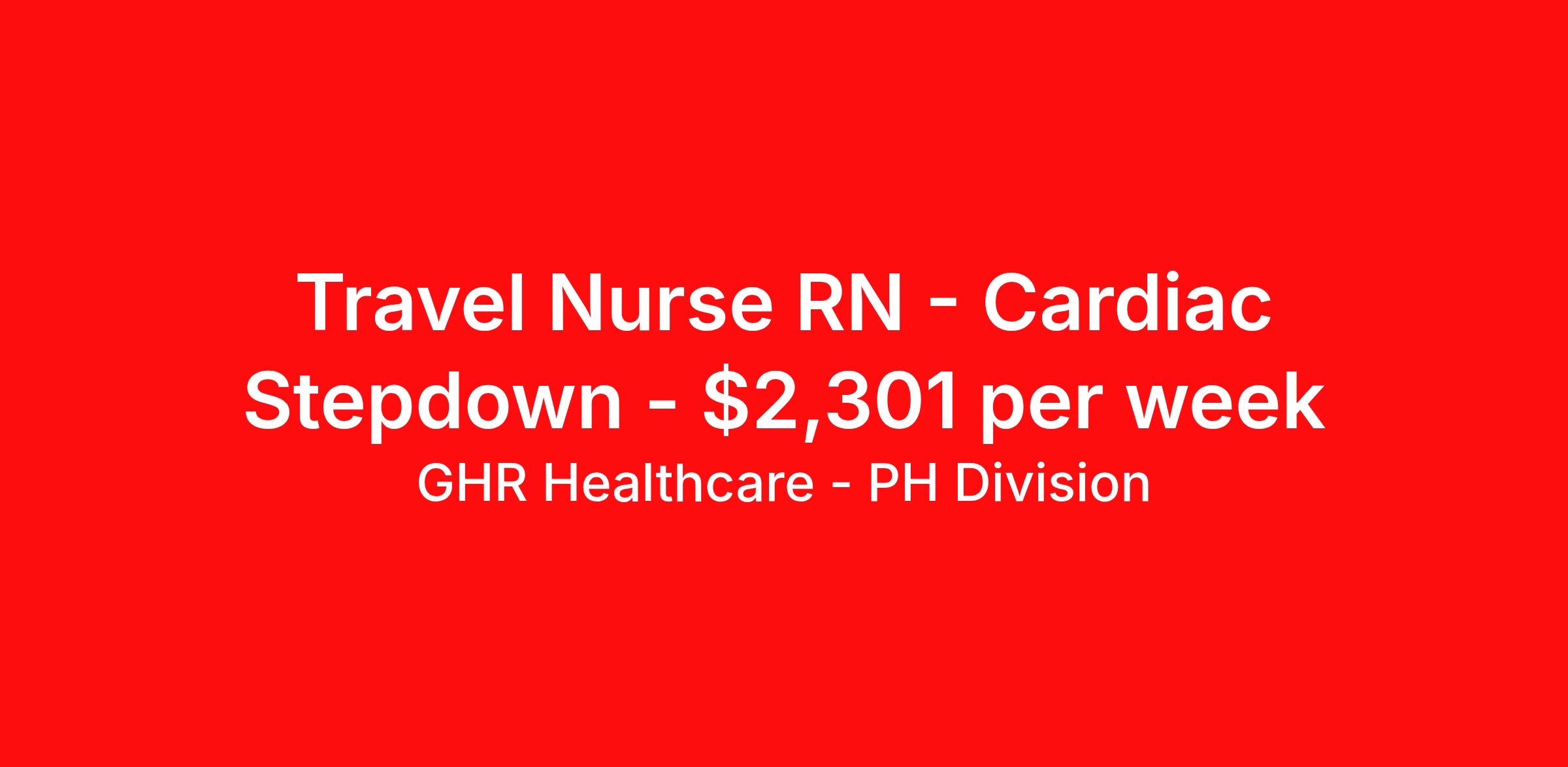 Travel Nurse RN - Cardiac Stepdown - $2,301 per week