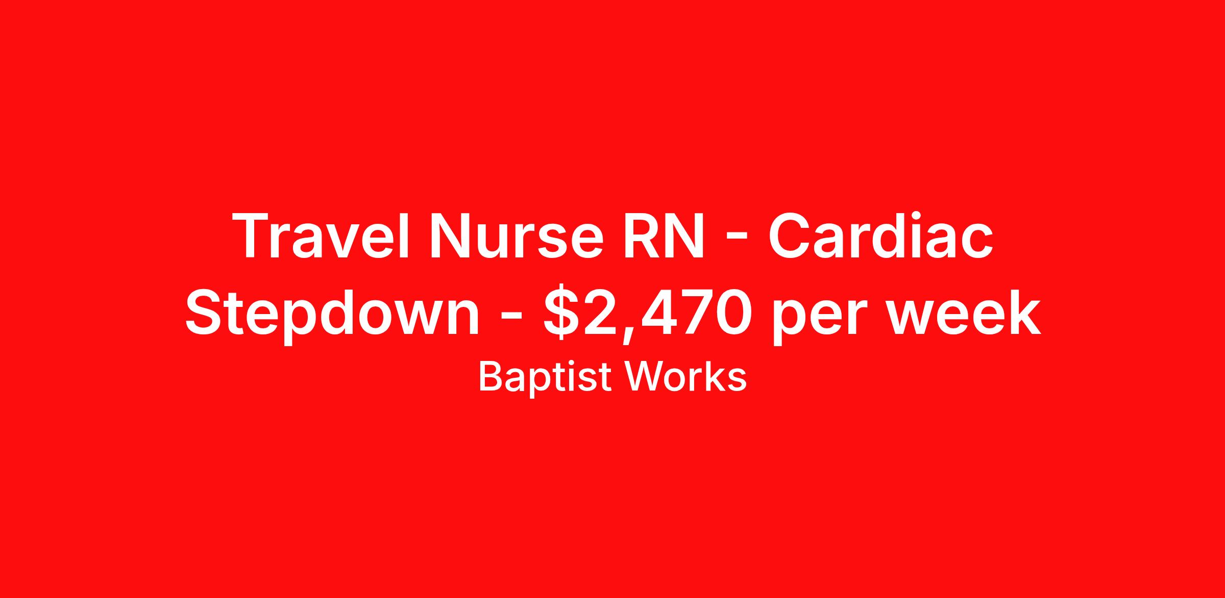 Travel Nurse RN - Cardiac Stepdown - $2,470 per week