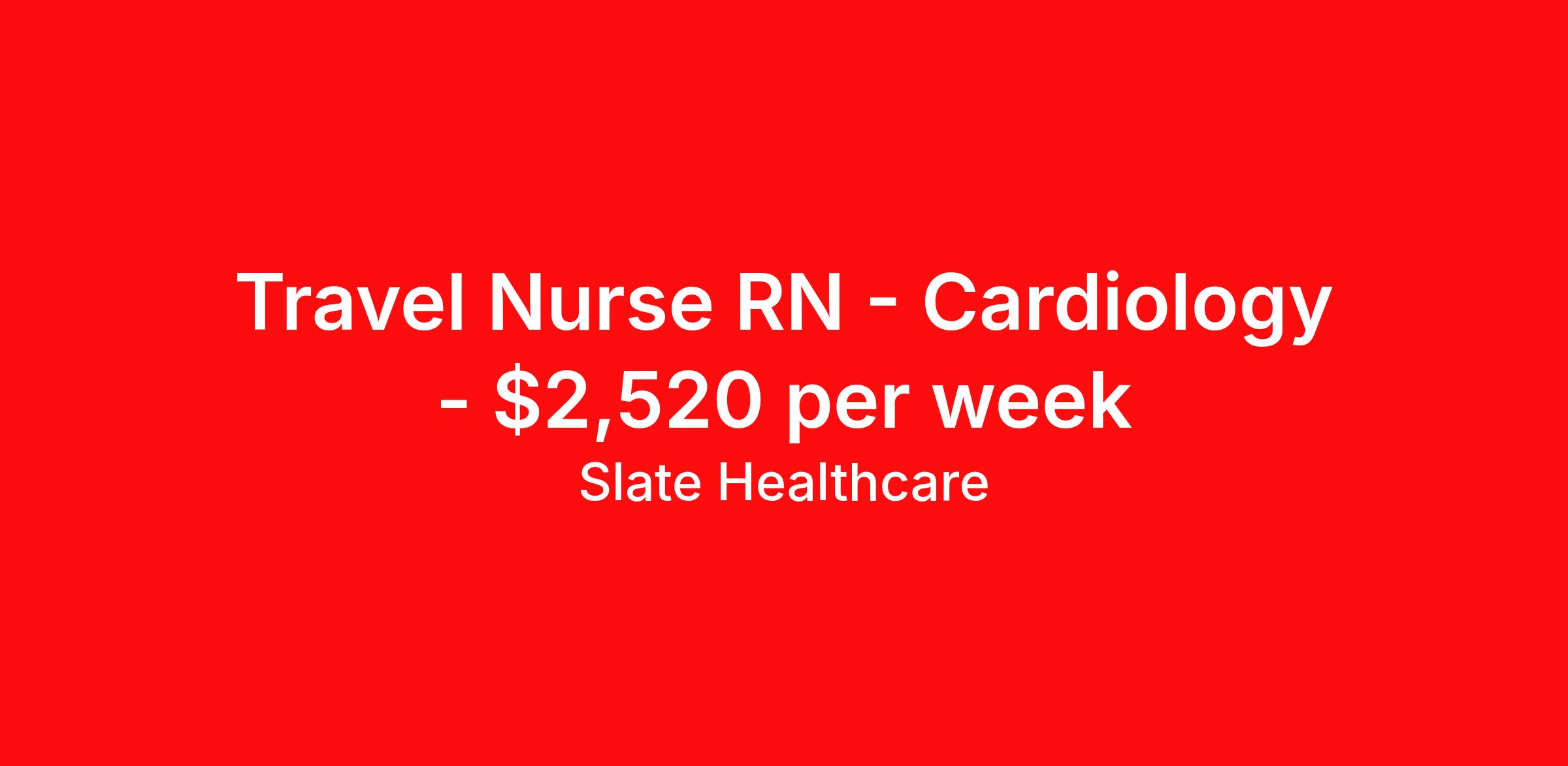 Slate Healthcare is seeking a travel nurse RN Cardiology for a travel nursing job in Plantation, Florida. Job Description & Requirements Specialty: Cardiology Discipline: RN Start Date: ASAP Duration: 13 weeks 40 hours per week Shift: 10 hours, days Employment Type: Travel Profession:RN, JobSpecialty:Cardiovascular, Shift:4x10 Days, Duration:13 weeks Slate Healthcare Job ID 861dc656-10ff-4f4b-be7a-fd6c48541255. Pay package is based on 10 hour shifts and 40 hours per week (subject to confirmation) with tax-free stipend amount to be determined. About Slate Healthcare Slate Healthcare is a premier travel healthcare staffing agency, connecting healthcare professionals with thousands of opportunities at top-tier hospitals and facilities across the country. We’re committed to supporting nurses and allied health professionals in building stable, fulfilling careers—while embracing the freedom and excitement that comes with travel. Our goal is simple: to offer flexibility, competitive pay, and personalized placements that align with each clinician’s lifestyle and career goals. At Slate, we empower our professionals to choose when and where they work, while ensuring they receive the highest compensation possible—because we believe that exceptional care starts with empowered caregivers.
