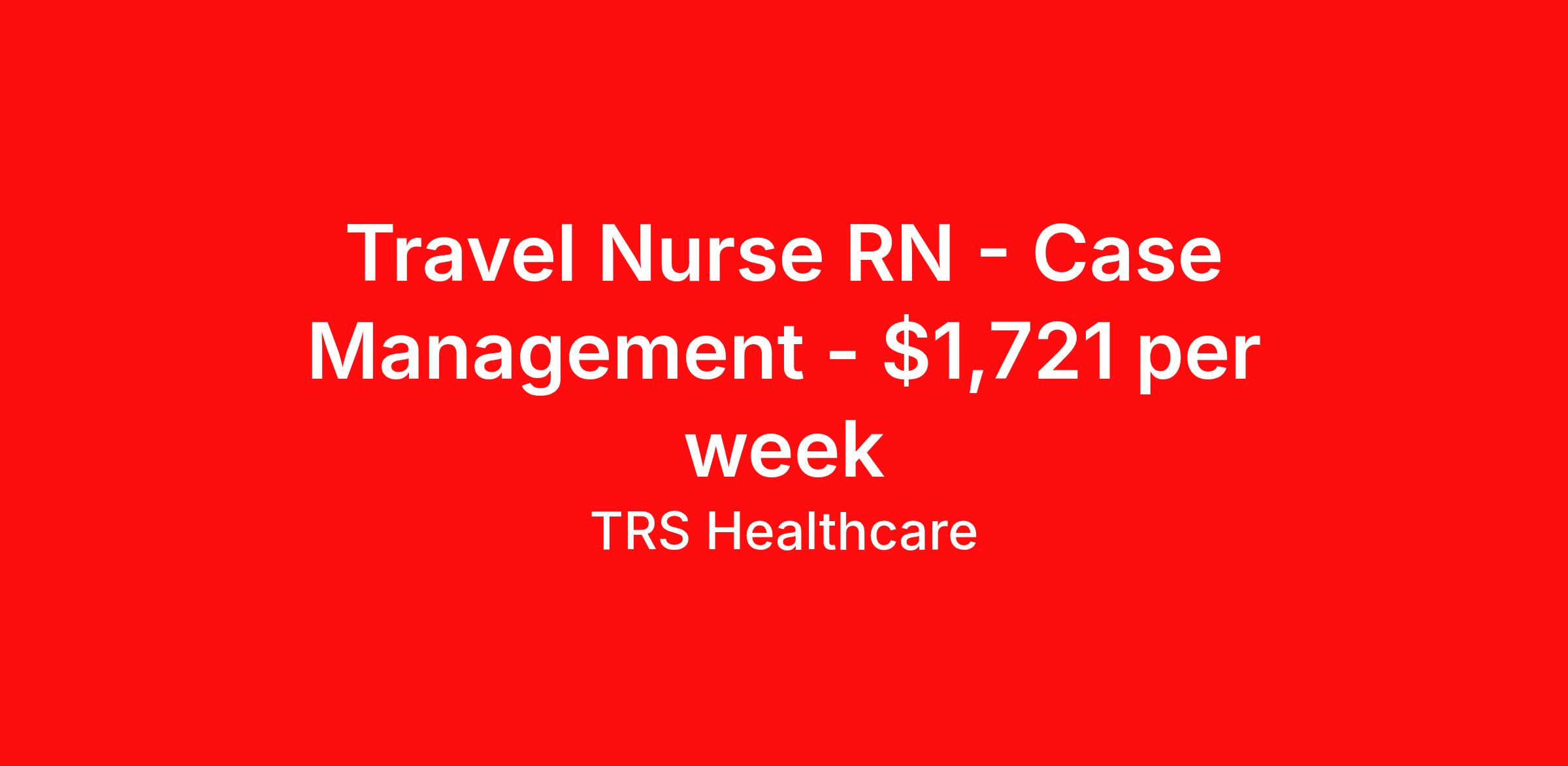TRS Healthcare is seeking a travel nurse RN Case Management for a travel nursing job in Brownsville, Texas. Job Description & Requirements Specialty: Case Management Discipline: RN Start Date: 03/23/2026 Duration: 13 weeks 40 hours per week Shift: 8 hours, days Employment Type: Travel TRS Healthcare Job ID 1443785. Pay package is based on 8 hour shifts and 40 hours per week (subject to confirmation) with tax-free stipend amount to be determined. Posted job title: Case Management Registered Nurse About TRS Healthcare TRS Healthcare has been a leader in the healthcare staffing industry for over 25 years, providing exceptional career opportunities for travel nurses and allied health professionals. An RN-founded, woman-owned company, TRS Healthcare has team members in all 50 states. We recruit and support registered nurses, licensed practical nurses, surgical technicians, respiratory therapists, imaging technologists, laboratory specialists, and other experienced nursing and allied healthcare professionals. We staff hundreds of healthcare facilities across the U.S. in urban, rural, and underserved areas, including multi-state hospital systems, critical access hospitals, rural community hospitals, long-term care facilities, trauma centers, standalone clinics, and more. Learn more about TRS Healthcare at trshealthcare.com .