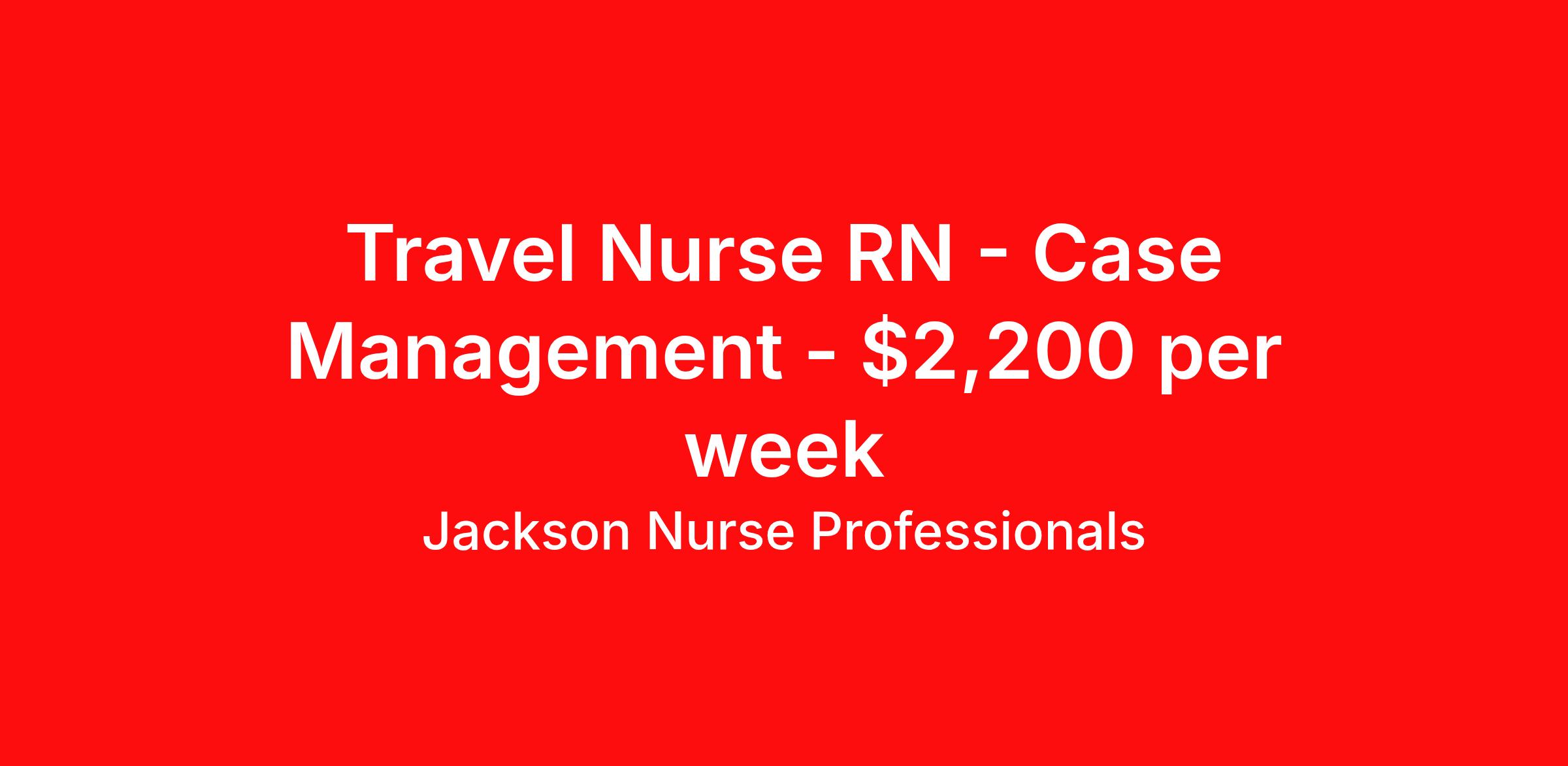 Jackson Nurse Professionals is seeking a travel nurse RN Case Management for a travel nursing job in Mobile, Alabama. Job Description & Requirements Specialty: Case Management Discipline: RN Start Date: ASAP Duration: 11 weeks 40 hours per week Shift: 8 hours, days Employment Type: Travel Case Manager (Mobile, AL) 5 8's some weekends 12 week contract $2200/week gross 40 hours Must submit today ! About Jackson Nurse Professionals Filling critical needs in patient care, Jackson Nurse Professionals delivers cost-effective travel nurse staffing solutions to over 500 hospitals, outpatient clinics, and home health clients nationwide. Awarded Best of Staffing - Talent and Client 2024, and rated as a Top Workplace 2023 by the Orlando Sentinel, Jackson Nurse Professionals goes the extra mile to provide travel nurses the career they deserve, while providing clients with a large range of highly skilled nurses to fill short, long-term, and temporary assignments. As a member of Jackson Healthcare’s family of award-winning staffing companies, we’re part of a growing community that’s impacting 10 million patients nationwide. Join our mission to improve the delivery of patient care, and the lives of everyone we touch.