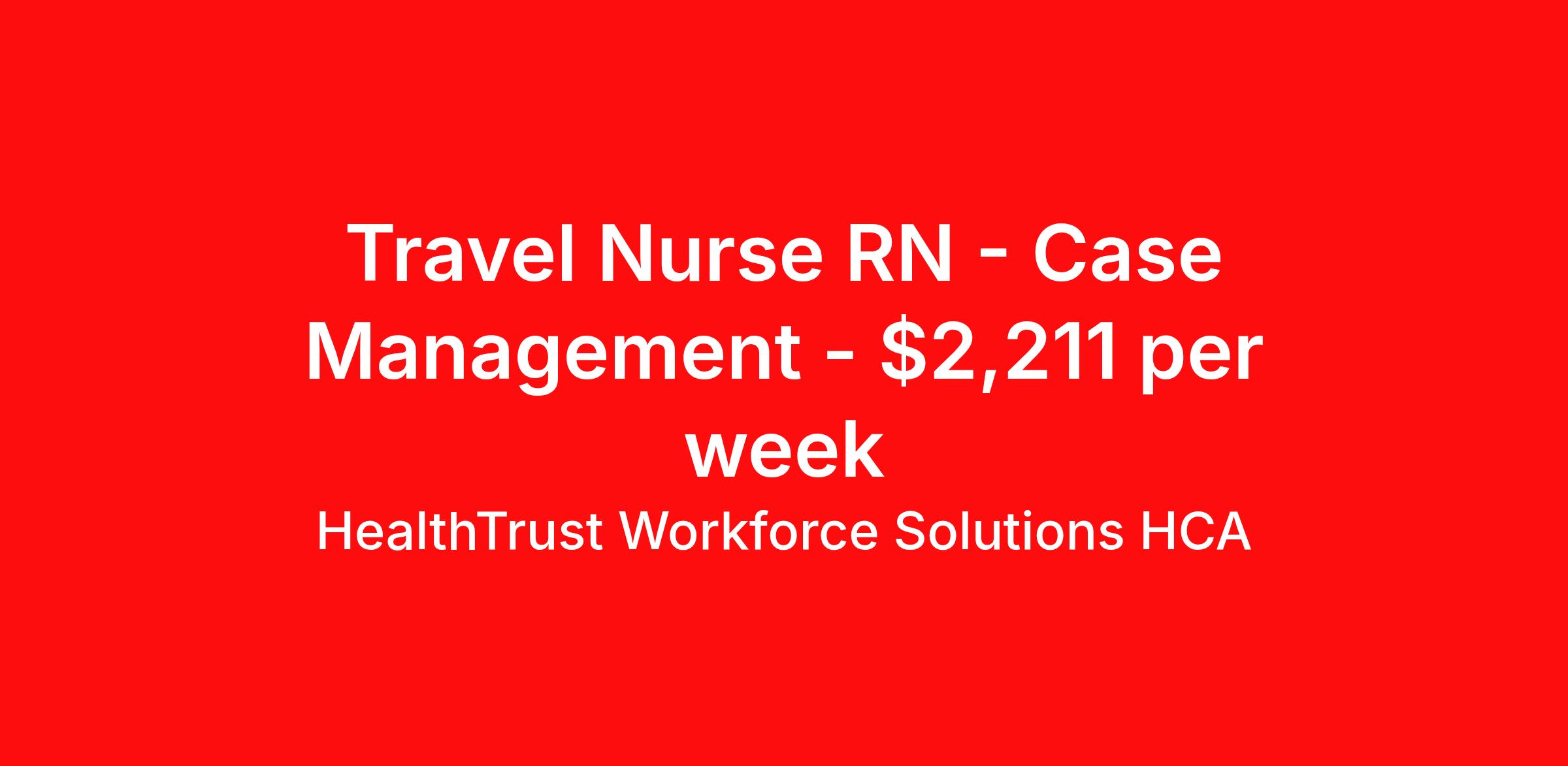 HealthTrust Workforce Solutions HCA is seeking a travel nurse RN Case Management for a travel nursing job in Alexandria, Louisiana. Job Description & Requirements Specialty: Case Management Discipline: RN Duration: 13 weeks 40 hours per week Shift: 8 hours, days Employment Type: Travel Shifts 8A-4:30P / 13 Weeks TRAVEL - RN - Case Manager (917) / Rapides / 8A-4:30P (991552) Must have : candidates without these skills will not be considered for the role. Case Management experience Midas/InterQual use Licensed Masters Preferred or nice to have : candidates with these skills will be considered first. Knowledge of area resources NATE List typical procedures performed on unit(s): Interviewing patients/families face-to-face MDRs on each unit, every day InterQual reviews on every patient; Observation reviews, DPEs, Discharge planning Best personality Fit: Gets along with anyone, not shy/timid Floating Area(s): Entire Hospital, including W&CH and ED We have multiple opportunities available nationwide. If you’re interested in this position—or would like to hear about other openings—please reply to this post or call/text me. Local contract options are also available. About HealthTrust Workforce Solutions HCA At HealthTrust Workforce Solutions, healthcare is not just about the four walls of a facility but about the people who provide and receive care. Our focus is on empowering healthcare professionals to deliver exceptional patient experiences by providing them with the necessary skills, tools, and support. We partner with healthcare facilities nationwide to ensure that the right professionals are in the right roles. We prioritize our clinicians by giving them a voice and access to opportunities to fulfill their mission of improving lives by providing quality patient care. We are committed to our core values of Trust, Innovation, Adaptability, Courage, and Accountability. We are dedicated to positively impacting the healthcare industry by providing first-priority access to more than 200,000 jobs nationwide to our healthcare professionals. Join us and be part of the HealthTrust family, where you can make a difference every day. We embrace our changing environment, and we maintain a culture that has a rich tradition of transforming itself to meet the challenges of the future. MISSION STATEMENT While putting great people in the right roles is essential, our mission is far greater. We want our clinicians to be part of the HealthTrust family, where healthcare professionals have a voice and are empowered with the right tools and opportunities to fulfill their personal mission of improving lives. Plus, as a preferred partner to thousands of top-performing hospitals, we provide our healthcare professionals with first-priority access to more than 200,000 jobs nationwide. Benefits Dental benefits Vision benefits Referral bonus Continuing Education Life insurance