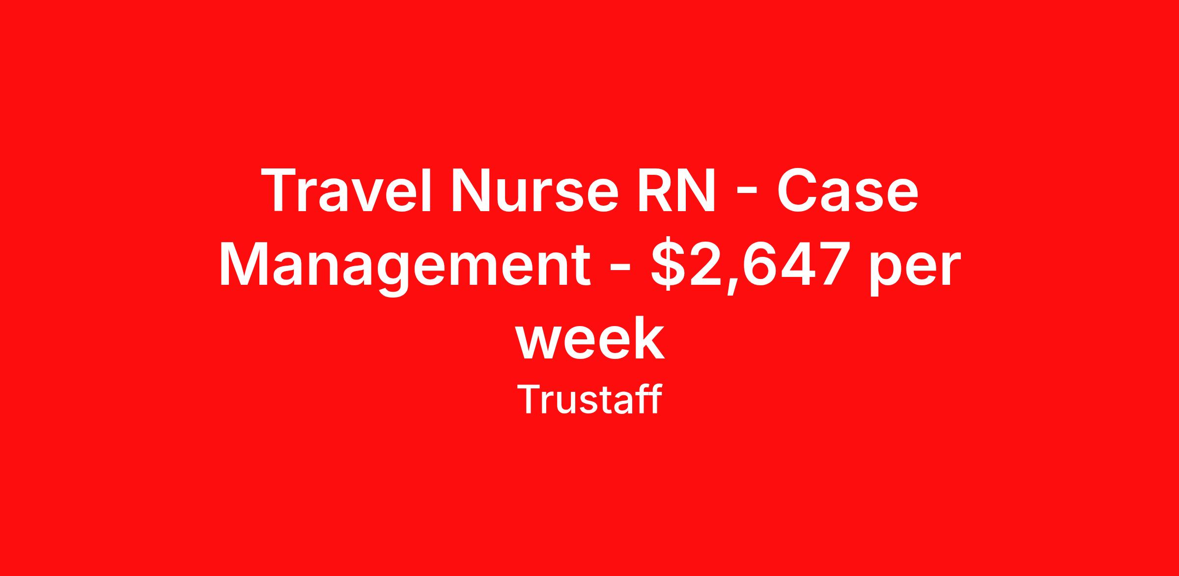 Trustaff is seeking a travel nurse RN Case Management for a travel nursing job in Northampton, Massachusetts. Job Description & Requirements Specialty: Case Management Discipline: RN Start Date: ASAP Duration: 26 weeks 40 hours per week Shift: 8 hours, days Employment Type: Travel As a Case Management RN, you'll develop, implement, and evaluate individual patient care plans. You'll work with patients one-on-one to manage their care appropriately and affordably. Case Managers are important liaison, and you'll serve as a link between patients, their families, and healthcare providers. Trustaff Job ID 949150. Pay package is based on 8 hour shifts and 40 hours per week (subject to confirmation) with tax-free stipend amount to be determined. Posted job title: Case Management About Trustaff Our nurse-first attitude has set us apart from other travel nursing agencies When you join the Trustaff family, you’re more than just a body filling a role—you're a vibrant individual with dreams and aspirations. As one of the nation's leading travel nursing companies, your recruiter will work with you one-on-one to guide your career and help you achieve your goals. You decide when and where you want to work Enjoy industry-leading pay, benefits, and bonuses Experience new people and places Grow your clinical skills and expand your experience Travel nursing lets you take your professional career to the next level while maintaining your flexibility and freedom. At Trustaff, we put you first, so you never have to compromise your work or pay. We are proud to have one of the highest nurse retention rates in the country. Some of the other reasons people choose us include: Priority access to thousands of travel nursing jobs Industry-leading pay Guaranteed weekly hours Experienced recruiters Comprehensive benefits, including medical, dental, and vision 401k with employer match Assistance with travel, compliance, and housing Great bonuses for completions, referring friends, and more Benefits Weekly pay Guaranteed Hours Wellness and fitness programs Referral bonus Medical benefits Dental benefits Vision benefits