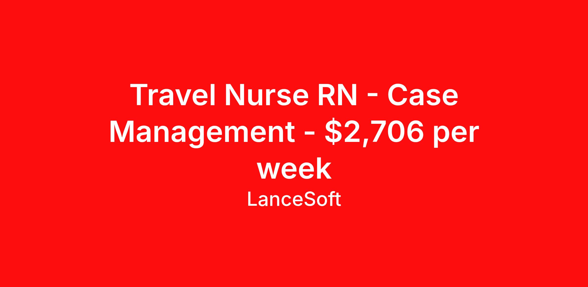 LanceSoft is seeking a travel nurse RN Case Management for a travel nursing job in Barre, Vermont. Job Description & Requirements Specialty: Case Management Discipline: RN Start Date: 04/13/2026 Duration: 20 weeks 36 hours per week Shift: 12 hours, days, nights, flexible Employment Type: Travel Central Vermont hospice home care agency in need of an experienced Hospice RN Experience with hospice case management required Experience providing hospice care in a home setting required. Prior experience with rural travel preferred. Experience with McKesson/Netsmart EMR preferred Work schedule Monday - Friday Prefer a nurse with no RTO requests for this contract Shift Information: Monday - Friday EMR Used: McKesson VT/Compact License BLS from AHA Referral Bonus About LanceSoft Established in 2000, LanceSoft is a Certified MBE and Woman-Owned organization. Lancesoft Inc. is one of the highest rated companies in the industry. We have been recognized as one of the Largest Staffing firms and ranked in the top 50 fastest Growing Healthcare Staffing firms in 2022. Lancesoft offers short- and long-term contracts, permanent placements, and travel opportunities to credentialed and experienced professionals throughout the United States. We pride ourselves on having industry leading benefits. We understand the importance of partnering with an expert who values your needs, which is why we’re 100% committed to finding you an assignment that best matches your career and lifestyle goals. Our team of experienced career specialists takes the time to understand your needs and match you with the right job Lancesoft has been chosen by Staffing Industry Analysts as one of the Best Staffing Firms to Work for.LanceSoft specializes in providing Registered Nurses, Nurse Practitioners, LPNs/LVNs, Social Workers, Medical Assistants, and Certified Nursing Assistants to work in Acute Care Centers, Skilled Nursing Facilities, Long-Term Care centers, Rehab Facilities, Behavioral Health Centers, Drug & Alcohol Facilities, Home Health & Community Health, Urgent Care Clinics, and many other provider-based facilities. Benefits Weekly pay Medical benefits