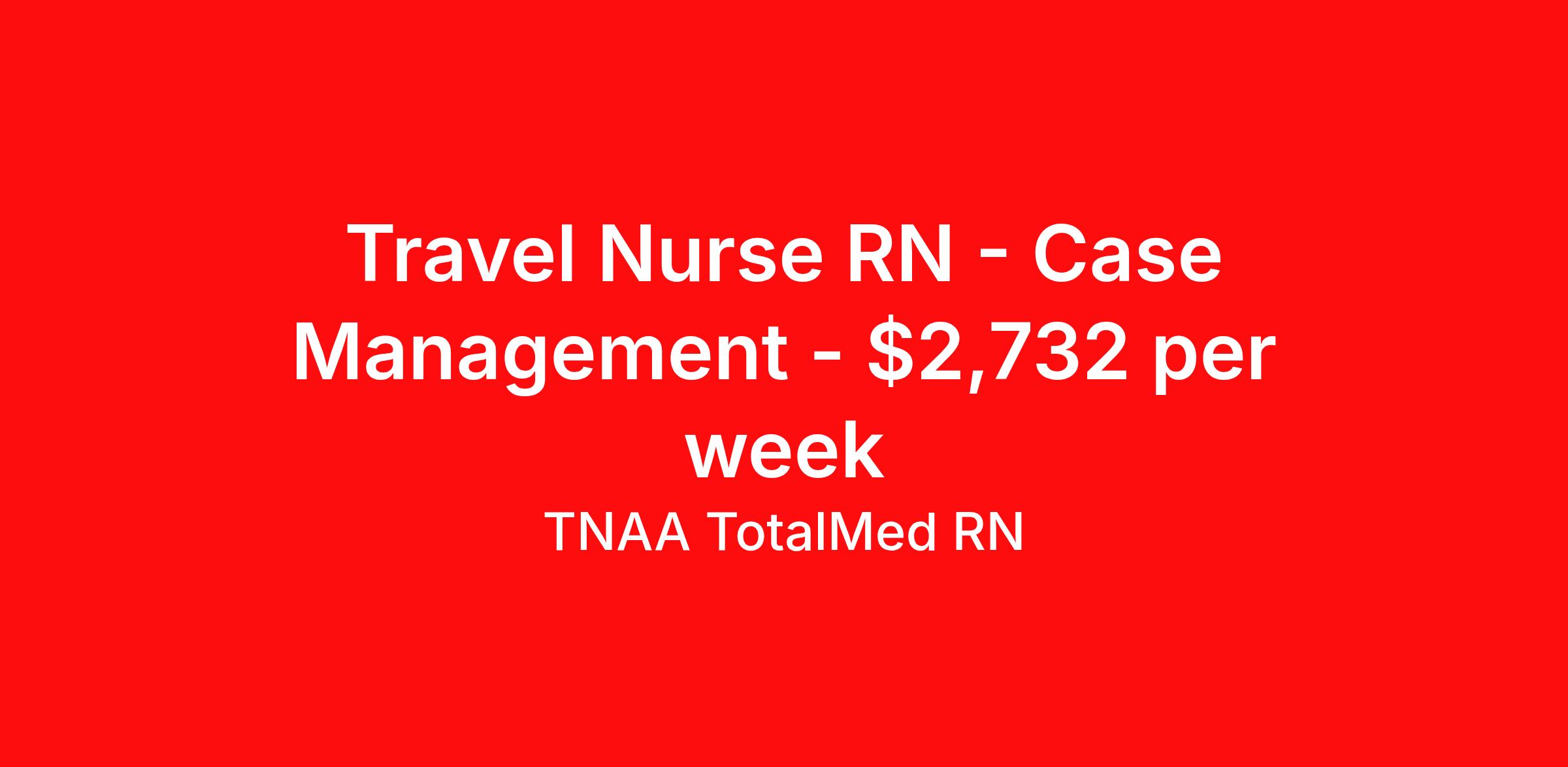 TNAA TotalMed RN is seeking a travel nurse RN Case Management for a travel nursing job in Concord, California. Job Description & Requirements Specialty: Case Management Discipline: RN Duration: 13 weeks 40 hours per week Shift: 8 hours, days Employment Type: Travel We're looking for RN Case managers for an immediate travel nurse opening in Concord, CA. The right RN should have 1-2 years recent case management experience. Read below for more requirements. As a RN Case Manager, you'll work with a highly skilled team of professionals to advocate for patients, evaluate, plan, provide resources and facilitate communication with family members. You will be responsible for comprehensive coordination of short and long-term care for patients, with the goal of decreasing hospital stay lengths and reducing readmission rates to generate cost-effective outcomes. As a Case Management Travel Nurse, you should be prepared to perform the following tasks: Evaluate and assess new patients. Create and update comprehensive short and long-term patient care plans. Educate families and patients about resources and health care options. Collaborate with other RNs, doctors and social workers. Properly document and submit medical records. Communicate with Insurance companies to collaborate or appeal decisions. Improve financial status by analyzing results, monitoring variances, identifying trends and recommending actions to management. Case Management Travel Nurses should be able to stand and walk for long periods of time, carry up to 10 pounds of weight, as well as bend, lean and stoop without difficulty. RN Case Managers should be able to manage a fluctuating caseload during times of high census and work efficiently in a collaborative environment. Because of the cooperative nature of this role, RN Case Managers should possess good oral and written communication abilities to communicate effectively with patients, families and co-workers. Requirements*: BLS, 2 Years * Additional certifications may be required before beginning an assignment. TotalMed Travel Job ID 1395965. Pay package is based on 8 hour shifts and 40 hours per week (subject to confirmation) with tax-free stipend amount to be determined. Posted job title: Case Manager - Case Mgr RN - Travel Nurse About TNAA TotalMed RN TotalMed is a Top Ten, travel nursing and healthcare staffing agency with the mission of igniting purpose in healthcare. The organization staffs nurses, therapists, pharmacists, and other clinicians of all specialties in all 50 states. They offer local and travel jobs and match caregivers with the right organization to assist both facilities and patients. As an organization, they focus on putting highly-skilled staff into facilities to ensure adequate staffing for a better patient experience. TotalMed specializes in recruiting and placing healthcare professionals in travel, PRN, and permanent positions across the country in Nursing and Allied Health. Throughout 2020, the organization filled roles at even the most short-staffed facilities during the most challenging time in healthcare. By matching the right travel healthcare professional with the right organization, TotalMed continues to offer a lifeline to facilities and their patients. Benefits Weekly pay Guaranteed Hours Continuing Education 401k retirement plan Sick pay Wellness and fitness programs Referral bonus Employee assistance programs Medical benefits Dental benefits Vision benefits Benefits start day 1