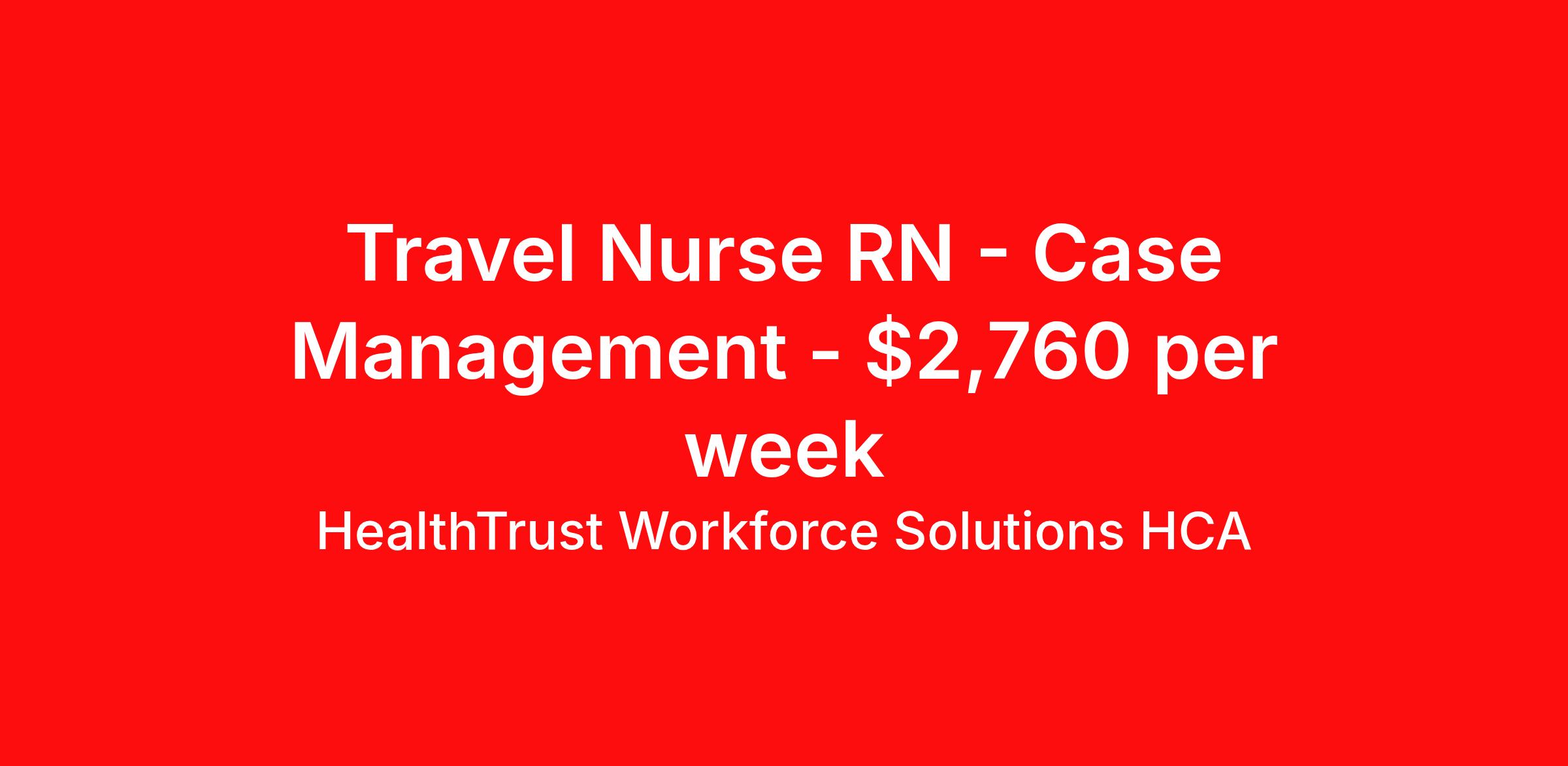 HealthTrust Workforce Solutions HCA is seeking a travel nurse RN Case Management for a travel nursing job in Asheville, North Carolina. Job Description & Requirements Specialty: Case Management Discipline: RN Duration: 13 weeks 40 hours per week Shift: 8 hours, days Employment Type: Travel Shifts 8:00AM - 4:30PM / 13 Weeks Position - TRAVEL - RN - CASE MANAGEMENT (842) / 8:00AM - 4:30PM (983456) Must have : candidates without these skills will not be considered for the role. Work collaboratively with RNCM DOCUMENTATION SKILLS COMMUNICATION SKILLS ABILITY TO SHIFT ATTENTION BETWEEN TASKS ABILITY TO BUILD TRUST WITH TEAM/PATIENTS AND FAMILY Procedures performed on unit: N/A Certifications Required: NA We have multiple opportunities available nationwide. If you’re interested in this position—or would like to hear about other openings—please reply to this post or call/text me. Local contract options are also available. About HealthTrust Workforce Solutions HCA At HealthTrust Workforce Solutions, healthcare is not just about the four walls of a facility but about the people who provide and receive care. Our focus is on empowering healthcare professionals to deliver exceptional patient experiences by providing them with the necessary skills, tools, and support. We partner with healthcare facilities nationwide to ensure that the right professionals are in the right roles. We prioritize our clinicians by giving them a voice and access to opportunities to fulfill their mission of improving lives by providing quality patient care. We are committed to our core values of Trust, Innovation, Adaptability, Courage, and Accountability. We are dedicated to positively impacting the healthcare industry by providing first-priority access to more than 200,000 jobs nationwide to our healthcare professionals. Join us and be part of the HealthTrust family, where you can make a difference every day. We embrace our changing environment, and we maintain a culture that has a rich tradition of transforming itself to meet the challenges of the future. MISSION STATEMENT While putting great people in the right roles is essential, our mission is far greater. We want our clinicians to be part of the HealthTrust family, where healthcare professionals have a voice and are empowered with the right tools and opportunities to fulfill their personal mission of improving lives. Plus, as a preferred partner to thousands of top-performing hospitals, we provide our healthcare professionals with first-priority access to more than 200,000 jobs nationwide. Benefits Dental benefits Vision benefits Referral bonus Continuing Education Life insurance