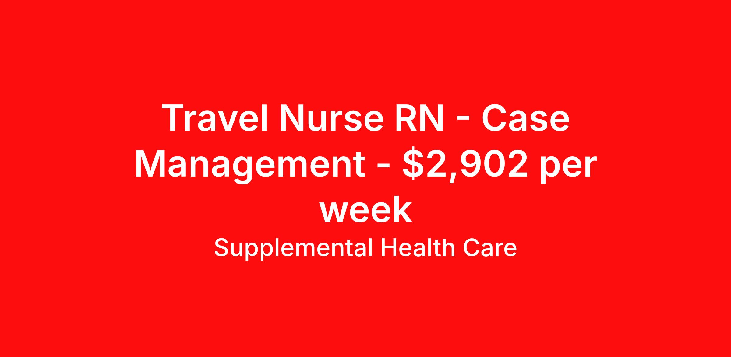 Supplemental Health Care is seeking a travel nurse RN Case Management for a travel nursing job in Bakersfield, California. Job Description & Requirements Specialty: Case Management Discipline: RN Start Date: ASAP Duration: 13 weeks 40 hours per week Shift: 8 hours, days Employment Type: Travel Job Description: Supplemental Health Care is connecting Case Management Registered Nurses with top-tier hospital contracts in Bakersfield, California. Travel or stay local, either way, we’ll guide you to an opportunity that matches your goals, offering excellent pay, benefits, and support. Qualifications: Current California Registered Nurse License / Certification American Heart Association BLS 1 to 2 years of recent Case Management experience Case Management Registered Nurse Contract Details: $2,680 - $2,902 per week* Weekly pay 13-week full-time contract with possibility to extend AM shifts available *Estimated weekly payment may include both taxable wages and tax-free reimbursements for meals, housing, and incidentals. Please speak with a recruiter for details. What We Offer: Full medical, dental, vision, life, and even pet insurance! Round the clock support. No matter where you are or what time it is, Supplemental Health Care is standing by. SHC's Share the Care referral program is the most dynamic, profitable referral program in the industry. 401(k) Retirement Savings Program with a wide range of investment options. Discounted and free online access to CEU courses through Supplemental University. Apply now to launch your next Case Management Registered Nurse assignment, or ask our team about other exciting Registered Nurse opportunities. Supplemental Health Care is an Equal Opportunity Employer. All candidates, including veterans and those with disabilities, are encouraged to apply. SHC will consider for employment qualified applicants with criminal histories in a manner consistent with the requirements of applicable local, state, or federal law. To learn more, visit www.shccares.com/eeo Supplemental Health Care Job ID 1470718. Pay package is based on 8 hour shifts and 40 hours per week (subject to confirmation) with tax-free stipend amount to be determined. Posted job title: Case Management Registered Nurse About Supplemental Health Care At Supplemental Health Care, a simple belief in the power of caring guides a unique commitment to world-class service in healthcare staffing. For 40 years, we’ve supported talented professionals pursuing their life calling in hospitals, schools, home health, corrections, behavioral health, and other settings. At SHC, we inspire vital connections and enrich lives and inspire better outcomes. As recipients of the Best in Staffing Awards for both Client and Talent, Supplemental Health Care is proud to be among only 2% of staffing companies singled out for the distinction based on the real feedback of our employees and the clients we serve. SHC has also earned The Joint Commission’s Gold Seal of Approval and is named among the Largest Health Care Staffing companies in the United States by Staffing Industry Analysts. We are also thrilled to recognize our very own SLP, Dr. Kelly Byrd as the American Staffing Association 2024 National Staffing Employee of the Year and Health Care Sector All-Star. We’re honored to connect Dr. Byrd to employment, share her incredible story, and support her family literacy nonprofit. For everyone that we serve, SHC is the place where caring hearts thrive. Benefits Referral bonus Benefits start day 1 401k retirement plan Continuing Education Discount program Health savings account