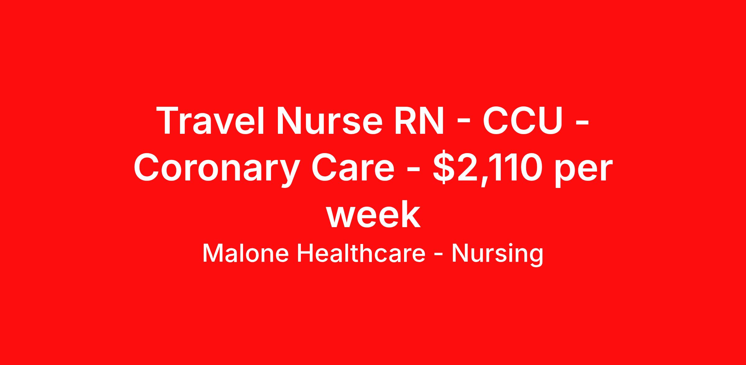 Malone Healthcare - Nursing is seeking a travel nurse RN CCU - Coronary Care for a travel nursing job in Louisville, Kentucky. Job Description & Requirements Specialty: CCU - Coronary Care Discipline: RN Start Date: 03/31/2026 Duration: 13 weeks 36 hours per week Shift: 12 hours, days Employment Type: Travel Assignment Summary – Mixed Acuity ICU/Tele RN (Days) Shift: 3x12s (07:00–19:00) Experience: 2 years required | First-time travelers accepted Weekends: Every other or every third (2 weekends/month) Unit Type: Mixed Acuity (ICU & Telemetry) ICU Ratio: 1:2 Tele Ratio: 1:4–5 Must be confident managing both critical care and full tele assignments Required Certifications: ACLS BLS NIH Testing: Must pass advanced dysrhythmia (EKG) exam Patient Population: Cardiac Critical Care General Medical Critical Care Special Procedures/Skills: CRRT Balloon Pump Impella Pacemakers ⚠️ Traveler must understand they will float between ICU-level and Tele-level assignments based on census. About Malone Healthcare - Nursing With a commitment to providing a higher standard of service and experience in patient care, Malone Healthcare places expert nurses and allied health professionals in rewarding careers throughout the United States. As a leading healthcare staffing agency, Malone’s focus on compliance and integrity translates to a seamless experience for our team members and partner facilities. When you work with Malone Healthcare, you can rely on over 50 years of proven experience placing exceptional professionals in quality healthcare settings. Benefits Weekly pay Holiday Pay Guaranteed Hours Continuing Education 401k retirement plan Pet insurance Referral bonus Medical benefits Dental benefits Vision benefits License and certification reimbursement Life insurance
