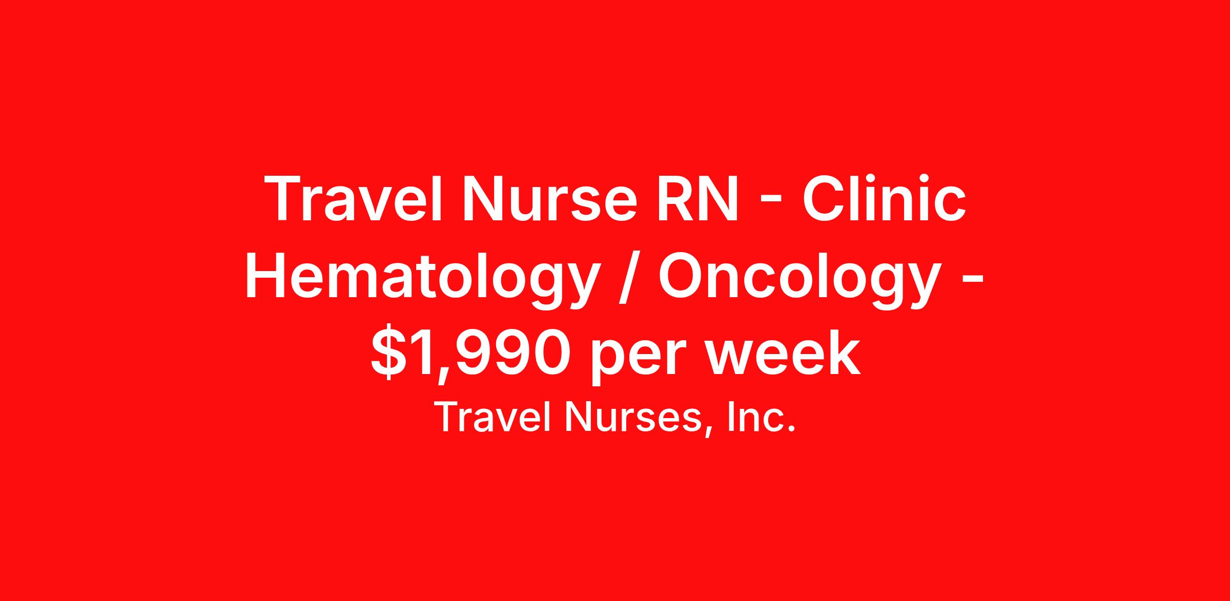 Travel Nurse RN - Clinic Hematology / Oncology - $1,990 per week