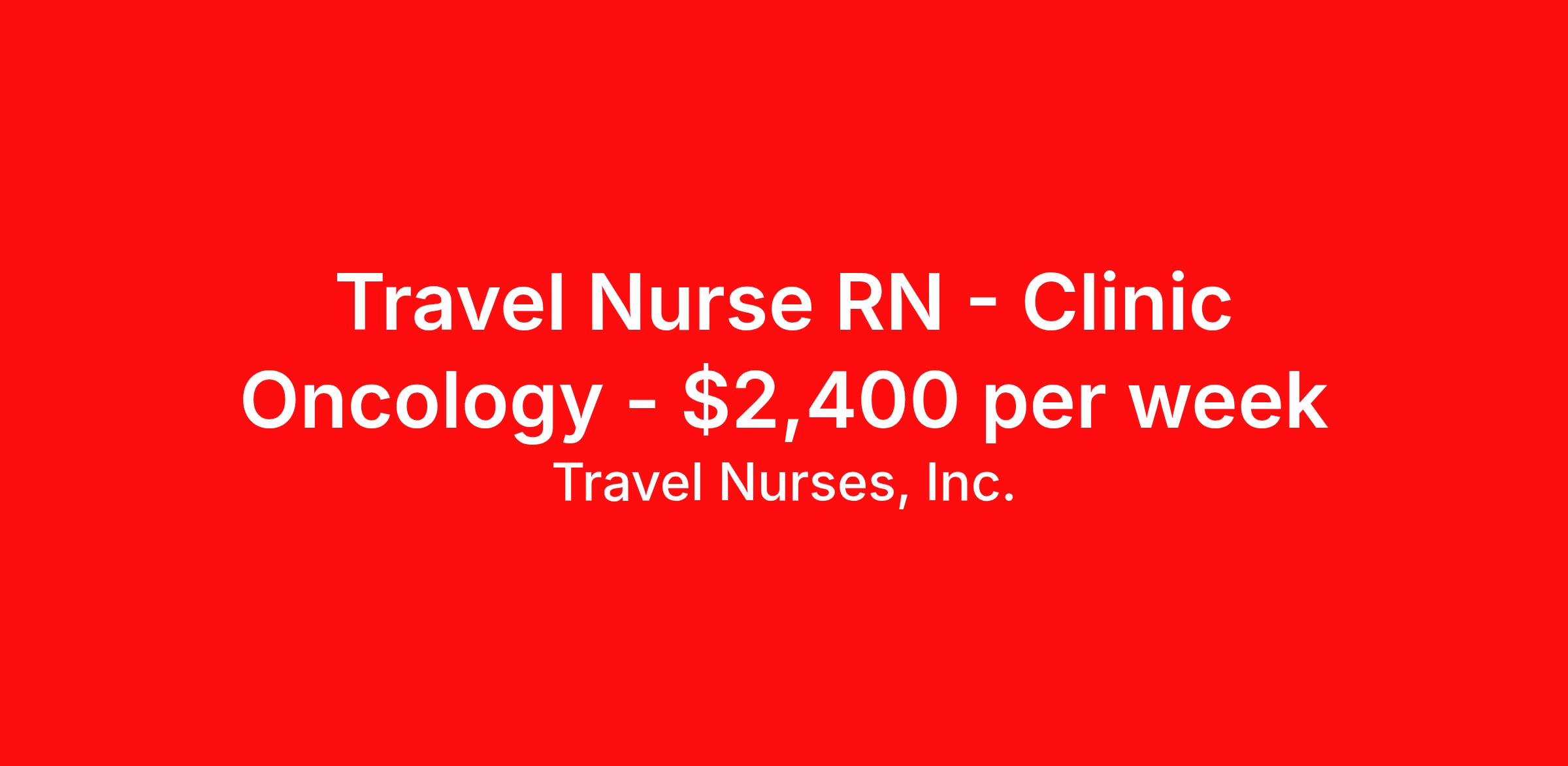 Travel Nurses, Inc. is seeking a travel nurse RN Clinic Oncology for a travel nursing job in Oklahoma City, Oklahoma. Job Description & Requirements Specialty: Oncology Discipline: RN Start Date: 03/30/2026 Duration: 13 weeks 40 hours per week Shift: 8 hours Employment Type: Travel Travel Nurses, Inc. Job ID 305498. Pay package is based on 8 hour shifts and 40 hours per week (subject to confirmation) with tax-free stipend amount to be determined. Posted job title: RN Oncology Infusion Clinic - Adult About Travel Nurses, Inc. Travel Nurses, Inc. is a leading healthcare staffing agency that provides healthcare professionals with opportunities to work across the country. Founded by nurses in 1988, TNI has more than 30 years of experience in the industry. The agency initially focused on staffing operating room settings in the MidSouth. However, this quickly evolved to encompass all nursing specialties and allied health fields nationwide. At the heart of our mission is a profound respect for nurses, whom we consider the cornerstone of healthcare. This acknowledgment extends beyond the nursing profession alone. Travel Nurses, Inc. now proudly embraces a wide array of healthcare professionals, recognizing their crucial roles in our collective mission. Travel Nurses, Inc. is dedicated to providing comprehensive support and opportunities that will help facilitate complete career mobility in the healthcare field. Our commitment to transparency ensures that all professionals, not just nurses, can confidently accept any assignment without financial uncertainties. We prioritize our professionals’ well-being with comprehensive benefits packages, including day-one healthcare coverage, competitive salaries, bonuses and incentives. This underscores our unwavering commitment to offering the best possible rewards and support for all the professionals we serve. Benefits Weekly pay Continuing Education 401k retirement plan Wellness and fitness programs Mileage reimbursement Referral bonus Employee assistance programs Medical benefits Dental benefits Vision benefits Benefits start day 1 License and certification reimbursement Life insurance Retention bonus