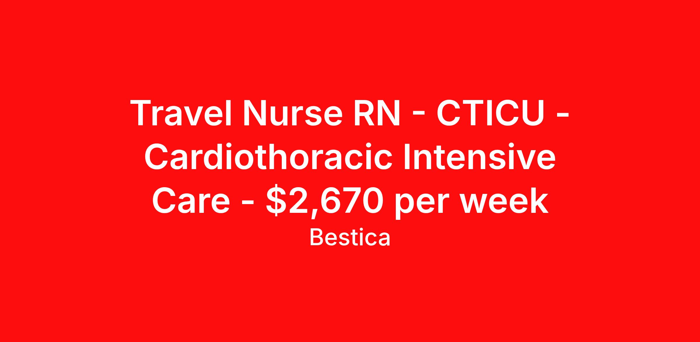 Travel Nurse RN - CTICU - Cardiothoracic Intensive Care - $2,670 per week