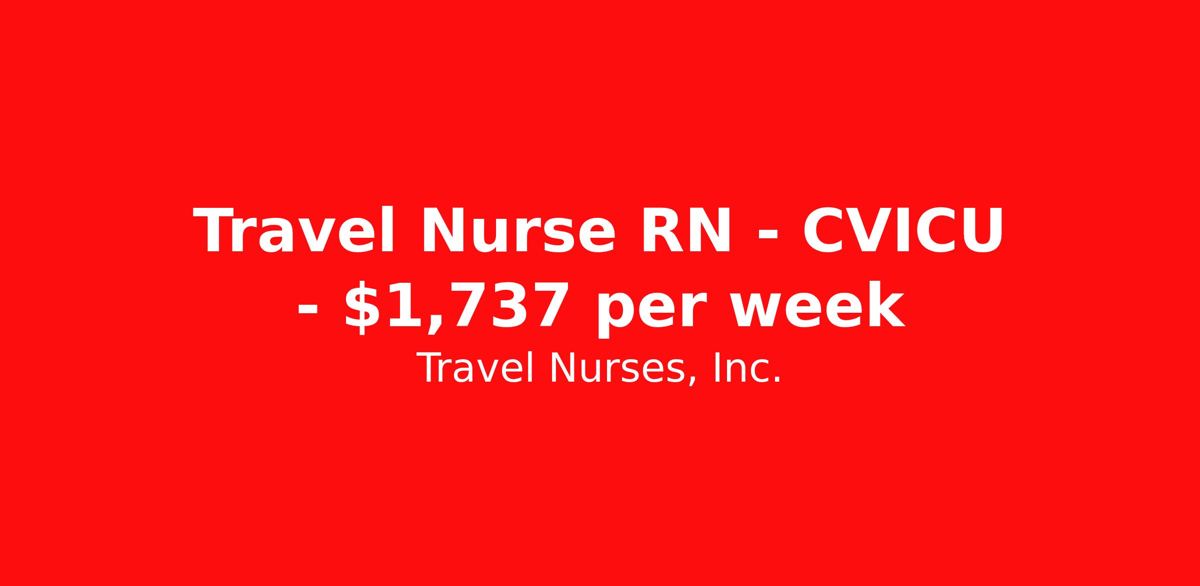 Travel Nurses, Inc. is seeking a travel nurse RN CVICU for a travel nursing job in Morgantown, West Virginia. Job Description & Requirements Specialty: CVICU Discipline: RN Start Date: ASAP Duration: 13 weeks 36 hours per week Shift: 12 hours Employment Type: Travel Travel Nurses, Inc. Job ID 303571. Pay package is based on 12 hour shifts and 36 hours per week (subject to confirmation) with tax-free stipend amount to be determined. Posted job title: CVICU Registered Nurse About Travel Nurses, Inc. Travel Nurses, Inc. is a leading healthcare staffing agency that provides healthcare professionals with opportunities to work across the country. Founded by nurses in 1988, TNI has more than 30 years of experience in the industry. The agency initially focused on staffing operating room settings in the MidSouth. However, this quickly evolved to encompass all nursing specialties and allied health fields nationwide. At the heart of our mission is a profound respect for nurses, whom we consider the cornerstone of healthcare. This acknowledgment extends beyond the nursing profession alone. Travel Nurses, Inc. now proudly embraces a wide array of healthcare professionals, recognizing their crucial roles in our collective mission. Travel Nurses, Inc. is dedicated to providing comprehensive support and opportunities that will help facilitate complete career mobility in the healthcare field. Our commitment to transparency ensures that all professionals, not just nurses, can confidently accept any assignment without financial uncertainties. We prioritize our professionals’ well-being with comprehensive benefits packages, including day-one healthcare coverage, competitive salaries, bonuses and incentives. This underscores our unwavering commitment to offering the best possible rewards and support for all the professionals we serve. Benefits Weekly pay Continuing Education 401k retirement plan Wellness and fitness programs Mileage reimbursement Referral bonus Employee assistance programs Medical benefits Dental benefits Vision benefits Benefits start day 1 License and certification reimbursement Life insurance Retention bonus