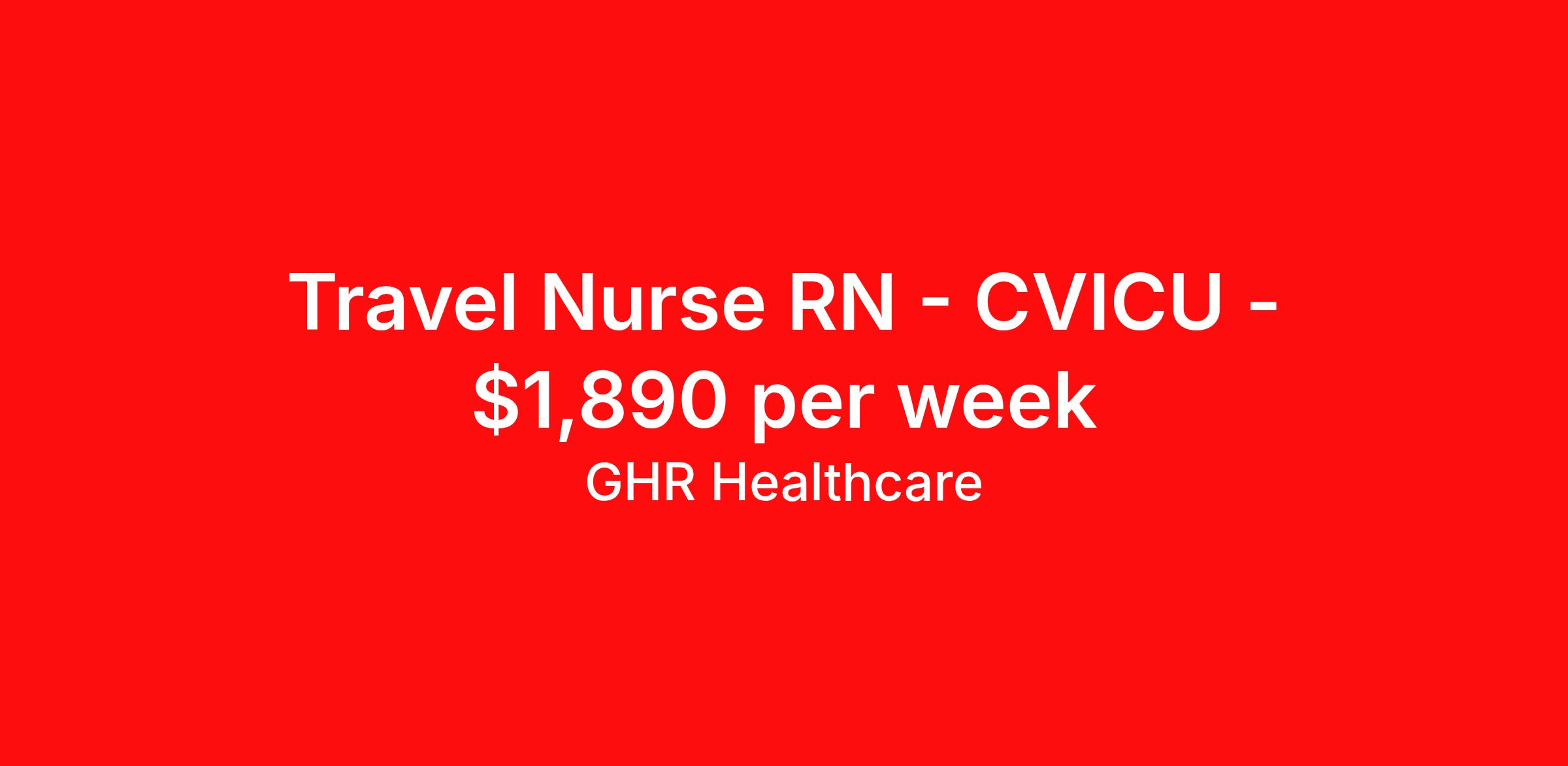 GHR Healthcare is seeking a travel nurse RN CVICU for a travel nursing job in Tyler, Texas. Job Description & Requirements Specialty: CVICU Discipline: RN Start Date: 04/20/2026 Duration: 13 weeks 36 hours per week Shift: 12 hours Employment Type: Travel Travel CVICU Registered Nurse (RN) – Night Shift | Tyler, TX (13-week contract) Travel CVICU Registered Nurse (RN) – Night Shift in Tyler, TX: 13-week contract for experienced cardiac ICU nurses with ECMO and critical care skills. Job Details Location: Tyler, TX 75701 – East Texas travel nursing job Setting: Cardiovascular Intensive Care Unit (CVICU) / Cardiac ICU Assignment Type: Travel Nursing (13-week contract) Start Date: March 23, 2026 End Date: June 22, 2026 Duration: 13 weeks Shift: Night shifts, 3x12-hour (19:00 - 07:00) Hours per Week: 36 Patient Ratio: 1:2 Unit Size: 10 beds, average daily census of 7 Scrub Color: Dark Gray Estimated Weekly Salary: $1680-$1770/week Job Requirements / Qualifications Active Registered Nurse (RN) license in the U.S. Minimum 2 years of recent CVICU / cardiac ICU experience (critical care RN) Proven experience with ECMO (veno-arterial and/or veno-venous) Previous travel nursing experience required Required certifications: ACLS and BLS Experience with Epic electronic charting system Ability to float to cardiac stepdown and units of equal or lesser acuity Preferred: previous charge experience, community hospital, LTAC, and trauma level I/II exposure Applicants must not reside in the following Texas counties: Henderson, Anderson, Cherokee, Rusk, Panola, Smith, Gregg, Van Zandt, Wood, Upshur, Camp, Hopkins, Franklin, Titus, and Morris Clinical Responsibilities Provide high-quality, compassionate care to adult and geriatric patients in the CVICU Manage patients requiring advanced cardiovascular support, including ECMO, intra-aortic balloon pumps, and post-cardiac surgery care Assess and manage dysrhythmias, multisystem organ failure, and hemodynamic instability Insert, monitor, and manage arterial, central, and PICC lines per unit policy Administer and titrate cardiac and vasoactive drips, continuous IV sedation, and ventilator management for intubated patients Interpret arterial blood gases (ABGs) and respond rapidly to changes in patient condition Document patient care thoroughly using Epic; maintain accurate charting and handoffs Collaborate with interdisciplinary teams including respiratory therapy, physical therapy, pharmacy, and IV therapy Float to cardiac stepdown and other units as needed to support patient care and unit staffing Why Join This Travel Nursing Assignment Work in a state-of-the-art Cardiovascular Intensive Care Unit caring for complex cardiac patients Ideal travel nurse opportunity for experienced CVICU / cardiac ICU RNs and ECMO nurses Tyler, TX (East Texas) offers a welcoming community, arts scene, and outdoor recreation during your assignment Supportive interdisciplinary team and opportunities to expand critical care skills Apply now to join our travel healthcare team as a CVICU Registered Nurse in Tyler, TX. Interested cardiac ICU and critical care RNs with ECMO experience should submit their resume and licensure details. Join our team and advance your travel nursing career today! Benefits 401K with Matching, Healthcare, Dental and Vision Equal Opportunity We are an equal opportunity employer and value diversity across our organization. We do not discriminate on the basis of race, religion, color, national origin, gender, sexual orientation, age, marital status, veteran status, or disability status. GHR Healthcare Job ID 464039. Pay package is based on 12 hour shifts and 36 hours per week (subject to confirmation) with tax-free stipend amount to be determined. Posted job title: CVICU About GHR Healthcare For over 30 years, GHR Healthcare has been the bridge between healthcare professionals and the facilities that need them nationwide. We're committed to uncovering your ideal fit, supported by GHR's dedication to competitive compensation, transparent communication, and a devoted team that genuinely cares about your career journey. You can trust us to stand by your side as your advocate, confidante, and partner in advancing your career. At GHR, care and consideration are at the heart of everything we do. Visit ghrhealthcare.com to learn more.
