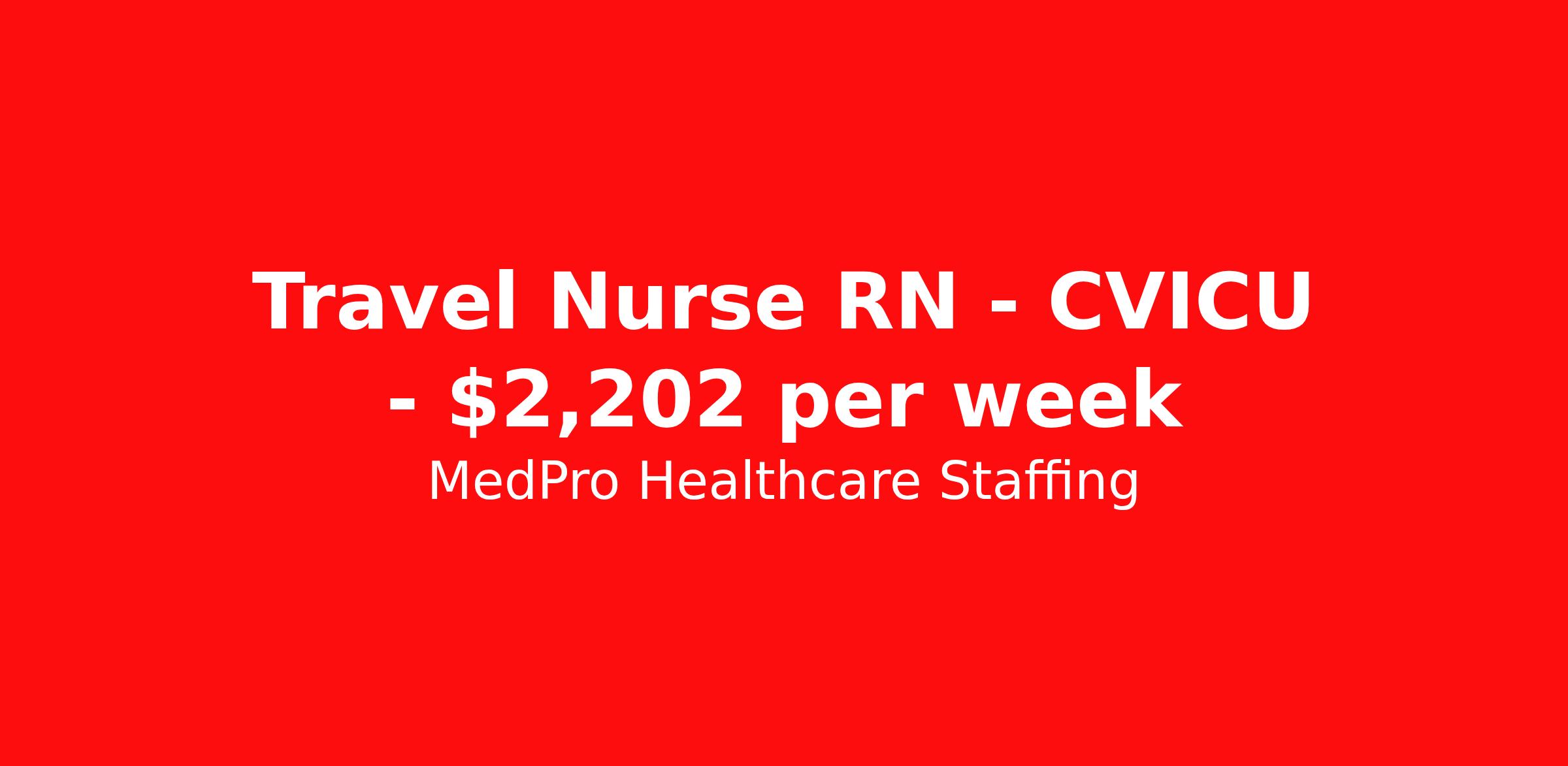 MedPro Healthcare Staffing is seeking a travel nurse RN CVICU for a travel nursing job in Greensboro, North Carolina. Job Description & Requirements Specialty: CVICU Discipline: RN Start Date: 04/13/2026 Duration: 13 weeks 36 hours per week Shift: 12 hours, nights Employment Type: Travel MedPro Healthcare Staffing , a Joint Commission-certified staffing agency, is seeking a quality CVICU Registered Nurse for a travel assignment with one of our top healthcare clients. Requirements Active RN License Degree from accredited nursing program BLS & ACLS Certifications Eighteen months of recent experience in an Acute Care CVICU setting Benefits Weekly pay and direct deposit Full coverage of all credentialing fees Private housing or housing allowance Group Health insurance for you and your family Company-paid life and disability insurance Travel reimbursement 401(k) matching Unlimited Referral Bonuses up to $1,000 Duties Responsibilities The Cardiovascular Intensive Care Unit (CVICU) registered nurse (RN) administers medications, checks vital signs and alert the doctors of any major changes in the patient’s condition. A CVICU RN acts as a liaison between the doctors and the patients, looking out for the welfare of each patient and relaying important information to the patient’s family and friends. Responsible for daily care, the CVICU nurse ensures each patient recovers comfortably. Administer care for patients following open-heart surgery. Responsible for the treatment and care of heart transplant patients. Educate the patient’s family on the ongoing needs and care of the patient. About Agency MedPro Healthcare Staffing is a Joint Commission certified provider of contract staffing services. Since 1983, we have placed nursing and allied travelers in top healthcare facilities nationwide. Join us today for your very own MedPro Experience®. If qualified and interested, please call for immediate consideration. MedPro Staffing is an Equal Opportunity Employer. All applicants will be considered for employment without attention to race, color, religion, national origin, age, sex, disability, marital status or veteran status. Key Words: Registered Nurse, RN, CVICU, Cardio Vascular ICU, Open Heart ICU, Contract Nurse, Travel Nurse, Agency RN, Travel RN, Nursing, Contract, Cardiovascular ICU *Weekly payment estimates are intended for informational purposes only and include a gross estimate of hourly wages and reimbursements for meal, incidental, and housing expenses. Your recruiter will confirm your eligibility and provide additional details. MedPro Job ID a0Fcx00000IBf8jEAD. Pay package is based on 12 hour shifts and 36 hours per week (subject to confirmation) with tax-free stipend amount to be determined. Posted job title: CVICU Registered Nurse Nursing: CVICU. About MedPro Healthcare Staffing At MedPro Healthcare Staffing , we believe no one cares more for caregivers than we do. Our mission is simple: you focus on your patients, and we’ll take care of the rest. As a Joint Commission-certified leader in temporary and contract healthcare staffing since 1983, MedPro has proudly connected nursing and allied travelers with top healthcare facilities across the nation. With thousands of job opportunities available nationwide, we make it easy to find assignments that align with your goals and lifestyle. Our on-staff clinical support team—alongside a compassionate group of experienced recruiters—provides hands-on guidance every step of the way. From Day 1 medical benefits and a 401(k) plan to personalized career support, we’re committed to ensuring every professional we serve feels valued, cared for, and empowered to succeed. Guided by a CEO who is a Registered Nurse, MedPro is built on a foundation of clinical insight and genuine compassion for the caregiving community. Through The MedPro Experience® , we deliver travel assignments that are rewarding, memorable, and designed to help you DREAM big, EXPLORE often, and ACHIEVE greatness. Benefits Day 1 medical, dental, and vision benefits for you and your family Weekly pay and direct deposit Unlimited Referral Bonuses starting at $500 On Staff Clinical Support Team Access to nationwide travel assignments MPX Mobile app -24/7 real-time access to jobs, credentials, assignment details, and more Full coverage of all credentialing fees Private housing or housing allowance Tax Free Per Diems, Housing Stipends and Travel Reimbursements Company-paid life and disability insurance Travel reimbursement 401(k) matching Benefits Weekly pay Referral bonus Employee assistance programs