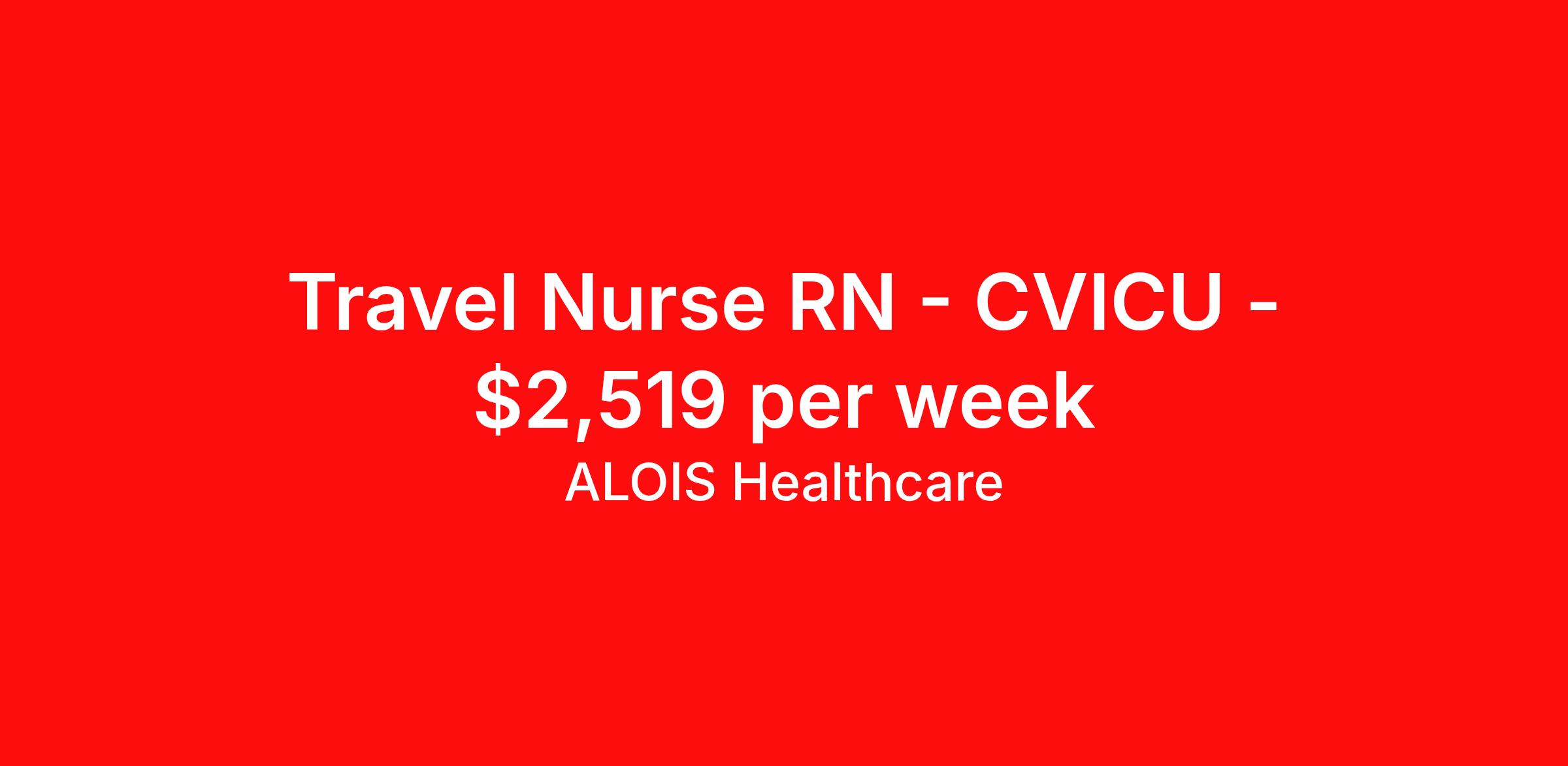 ALOIS Healthcare is seeking a travel nurse RN CVICU for a travel nursing job in Great Falls, Montana. Job Description & Requirements Specialty: CVICU Discipline: RN Start Date: ASAP Duration: 13 weeks 36 hours per week Shift: 12 hours, nights Employment Type: Travel CVICU nurses care for patients with heart or lung conditions that need constant and sometimes invasive monitoring. They are constantly keeping their eyes on a variety of patient health indicators like blood pressure, oxygen saturation, heart rate and body temperature. ALOIS Healthcare Job ID 17921647. Pay package is based on 12 hour shifts and 36.0 hours per week (subject to confirmation) with tax-free stipend amount to be determined. Posted job title: RN CVICU About ALOIS Healthcare Why ALOIS Healthcare? ALOIS means “brave warrior” and that’s what you are- Warrior in Scrubs! Just as you advocate for your patients, we will advocate for you. The pay you deserve. The support you need. We’re in your corner for every battle – because you shouldn’t settle for anything less when it comes to your career. We offer: · Industry-leading pay Generous cost of living and housing stipends · Opportunities for referral, sign-on, and extension bonuses · Weekly health insurance or health insurance Marketplace weekly bonus · Continuing education credits We’re proud to be recognized globally as a certified minority-owned staffing supplier. At ALOIS Healthcare: · Everyone Matters · We are Performance Driven · We are Open, Honest and Direct · We are Transparent · We are Inclusive · We Do the Right Thing We care about you - and your success is our success.