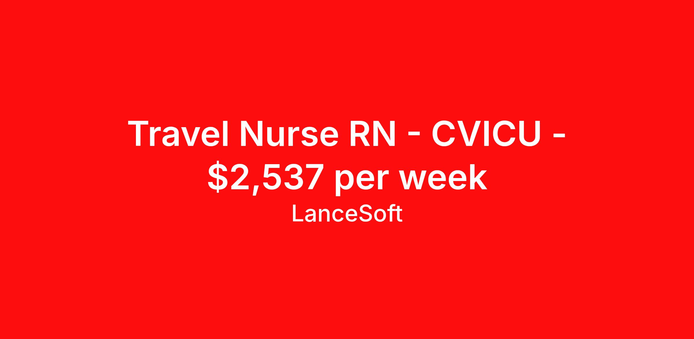 Travel Nurse RN - CVICU - $2,537 per week