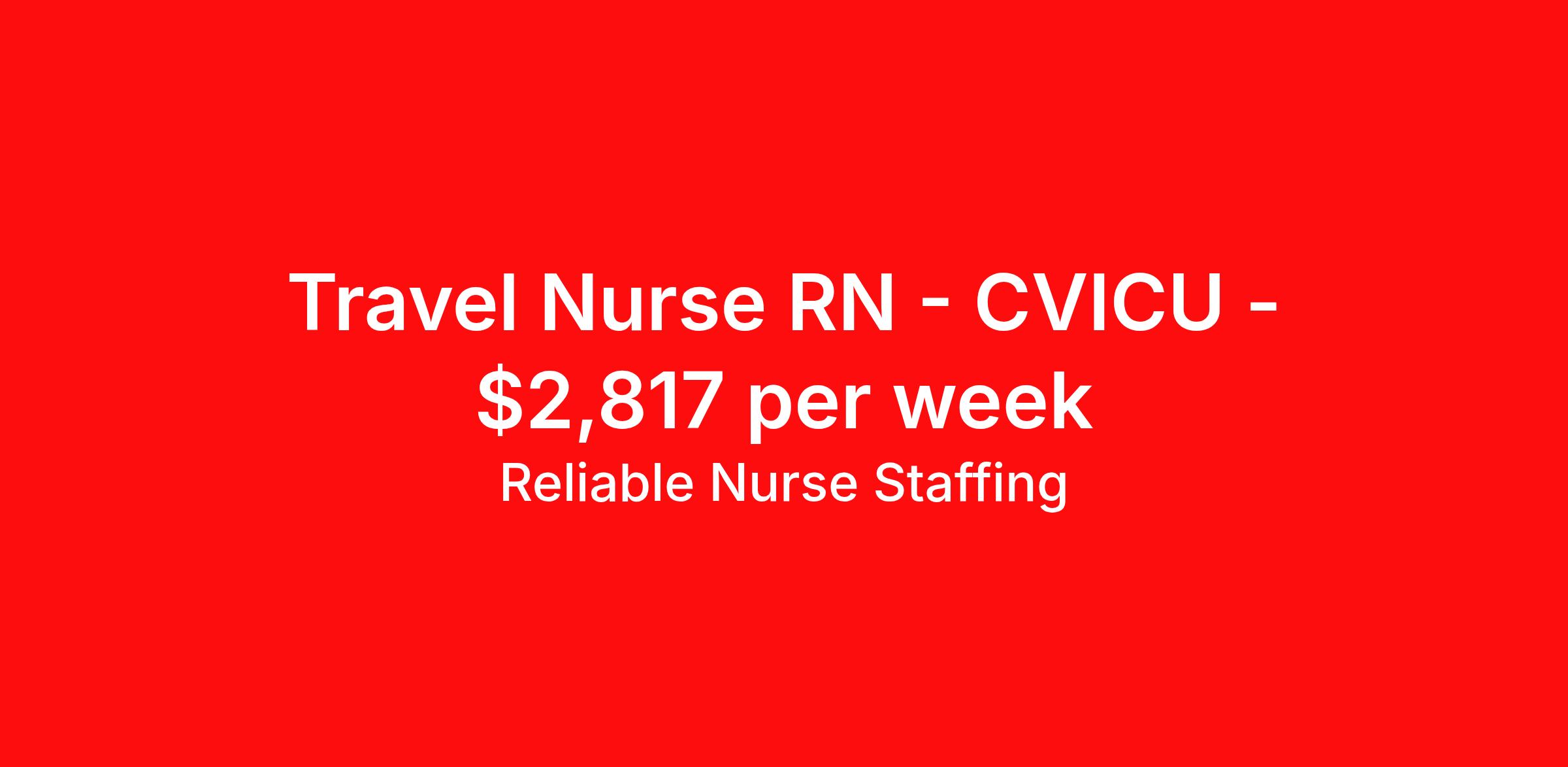 Reliable Nurse Staffing is seeking a travel nurse RN CVICU for a travel nursing job in Oklahoma City, Oklahoma. Job Description & Requirements Specialty: CVICU Discipline: RN Start Date: 04/06/2026 Duration: 13 weeks 36 hours per week Shift: 12 hours, nights Employment Type: Travel Candidates must have experience with impella, balloon pump, heart recovery. Requesting proficient in Impella, IABP, CRRT, Post open heart day 2 care, ECCMO Required Certifications & Licensure: -Current RN License issued by the Oklahoma State Board of Nursing, or a current multistate compact RN License (eNLC). -Current Basic Life Support issued by the American Heart Association. -ACLS (American Heart Association). Level 1 Trauma preferred, Travel experience About Reliable Nurse Staffing Providing reliable, competent, and compassionate care to our patients and clients. Benefits Weekly pay Holiday Pay Guaranteed Hours Referral bonus Medical benefits Dental benefits Vision benefits Life insurance