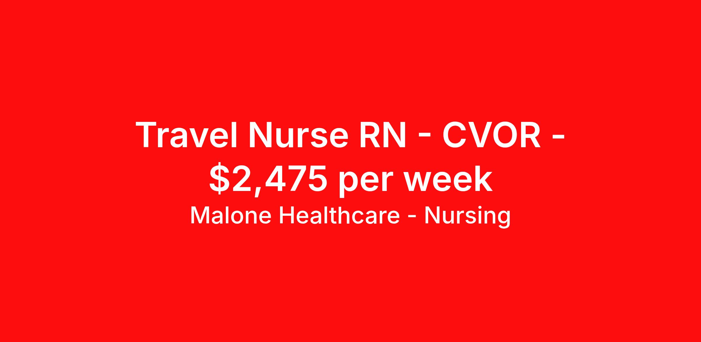 Travel Nurse RN - CVOR - $2,475 per week