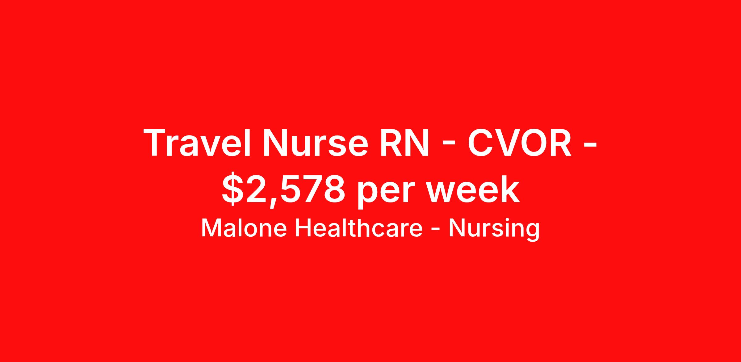 Malone Healthcare - Nursing is seeking a travel nurse RN CVOR for a travel nursing job in Paducah, Kentucky. Job Description & Requirements Specialty: CVOR Discipline: RN Start Date: 04/09/2026 Duration: 13 weeks 40 hours per week Shift: 8 hours, days Employment Type: Travel Job Description: Monday-Friday 0600-1430 call every 3rd weekend 1-2 nights per week Minimum 2 years CVOR exp BLS/ACLS/KY or compact license Must be competent with 3's/4's on skills list: CABG Aortic Valves Mitral Valves Tricuspid valves TAVRtranscatheter aortic valve replacements Aortic arch and root replacements with circulatory arrest ECMO Impella insertions open thoracotomies laparoscopic thoracoscopies mediastinscopies and other related chest procedures. Shift Info: Day 5x8-Hour 06:00 - 14:30 About Malone Healthcare - Nursing With a commitment to providing a higher standard of service and experience in patient care, Malone Healthcare places expert nurses and allied health professionals in rewarding careers throughout the United States. As a leading healthcare staffing agency, Malone’s focus on compliance and integrity translates to a seamless experience for our team members and partner facilities. When you work with Malone Healthcare, you can rely on over 50 years of proven experience placing exceptional professionals in quality healthcare settings. Benefits Weekly pay Holiday Pay Guaranteed Hours Continuing Education 401k retirement plan Pet insurance Referral bonus Medical benefits Dental benefits Vision benefits License and certification reimbursement Life insurance