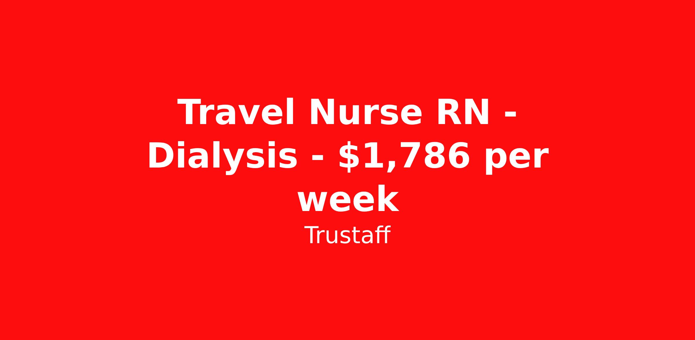 Trustaff is seeking a travel nurse RN Dialysis for a travel nursing job in Tuscaloosa, Alabama. Job Description & Requirements Specialty: Dialysis Discipline: RN Start Date: 04/27/2026 Duration: 13 weeks 36 hours per week Shift: 12 hours, nights Employment Type: Travel As a Hemodialysis RN, you'll provide care and support for patients suffering from acute and chronic kidney failure. Hemodialysis nurses must be well-versed in renal failure and hemodialysis, and you must be able to counsel patients on managing the disease and its effects. Trustaff Job ID 976190. Pay package is based on 12 hour shifts and 36 hours per week (subject to confirmation) with tax-free stipend amount to be determined. Posted job title: Hemodialysis About Trustaff Our nurse-first attitude has set us apart from other travel nursing agencies When you join the Trustaff family, you’re more than just a body filling a role—you're a vibrant individual with dreams and aspirations. As one of the nation's leading travel nursing companies, your recruiter will work with you one-on-one to guide your career and help you achieve your goals. You decide when and where you want to work Enjoy industry-leading pay, benefits, and bonuses Experience new people and places Grow your clinical skills and expand your experience Travel nursing lets you take your professional career to the next level while maintaining your flexibility and freedom. At Trustaff, we put you first, so you never have to compromise your work or pay. We are proud to have one of the highest nurse retention rates in the country. Some of the other reasons people choose us include: Priority access to thousands of travel nursing jobs Industry-leading pay Guaranteed weekly hours Experienced recruiters Comprehensive benefits, including medical, dental, and vision 401k with employer match Assistance with travel, compliance, and housing Great bonuses for completions, referring friends, and more Benefits Weekly pay Guaranteed Hours Wellness and fitness programs Referral bonus Medical benefits Dental benefits Vision benefits