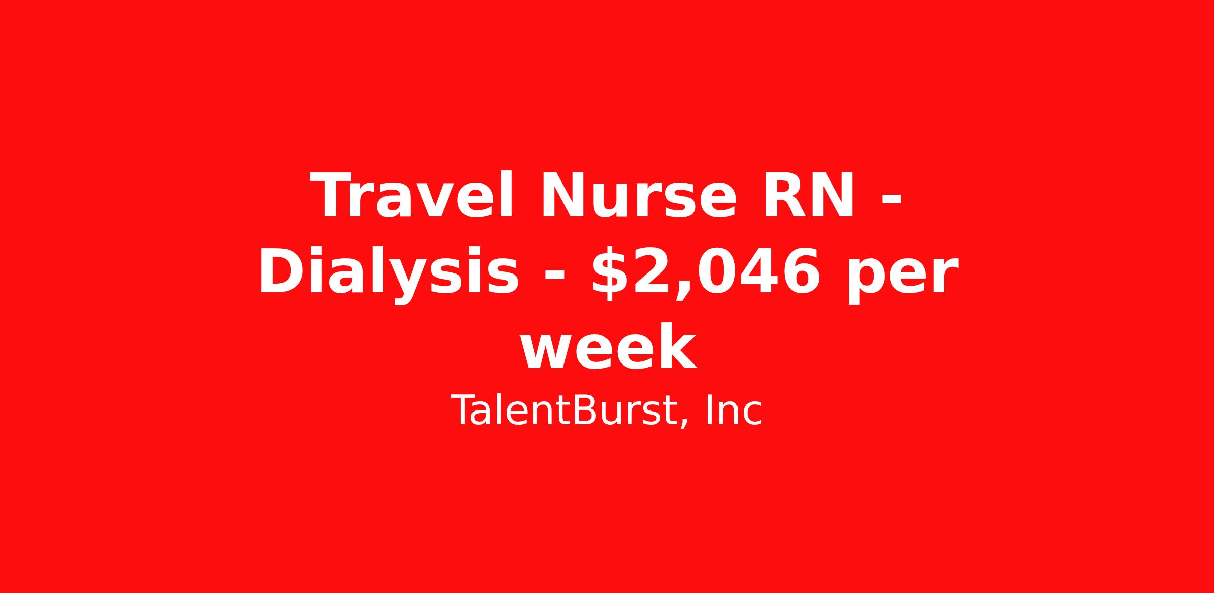 TalentBurst, Inc is seeking a travel nurse RN Dialysis for a travel nursing job in Lumberton, North Carolina. Job Description & Requirements Specialty: Dialysis Discipline: RN Start Date: 04/13/2026 Duration: 13 weeks 40 hours per week Shift: 8 hours, days Employment Type: Travel Title: Dialysis Acute Care Registered Nurse PURPOSE AND SCOPE: The Inpatient RN provides direct patient care in accordance with company policies and procedures which includes Client compliance programs and contracted hospitals' policies and procedures. Areas of practice are diverse, including, but not limited to, hemodialysis, peritoneal dialysis, continuous renal replacement therapies, apheresis, and ultrafiltration. The Inpatient RN will partner with the hospital to provide quality care to the patient and deliver care that provides a positive patient experience. PRINCIPAL DUTIES AND RESPONSIBILITIES: Under limited supervision, applies considerable knowledge to perform a broad range of tasks which include but are not limited to direct patient care in multiple modalities not limited to hemodialysis, peritoneal dialysis, ultrafiltration, continuous renal replacement therapy, and Apheresis. Provides supervision and direction of Patient Care Technicians and clerical staff; provides direction and education to ICU staff for CRRT. Responsible for direct patient care of assigned patients in the Inpatient Renal Replacement and Apheresis Services setting and providing the appropriate treatment technique for assigned patients as prescribed in all modality procedures, as appropriately defined – hemodialysis, peritoneal, continuous renal replacement therapies, ultrafiltration, and Apheresis. Assesses patients' responses to treatment therapy making appropriate adjustments and modifications to the treatment plan as indicated by the appropriately credentialed physician. Communicate problems or concerns to the Inpatient Program Manager, appropriately credentialed physician, patient hospital primary nurse and others as indicated. Delivers safe, effective care in a timely an efficient manner. Gives organized, concise shift reports for patients on assigned shifts. Apply high level thinking skills to shift patient schedules to meet needs of more critical patients due to labs, MD order, or patient assessment. Responsible for the implementation, administration, monitoring, and documentation of patient's response to prescribed intradialytic transfusions, including appropriate notification of adverse reactions to physician and appropriate blood supplier. Collaborates and communicates with physicians and other members of the healthcare team to interpret, adjust, and coordinate daily patient care plan to ensure continuity of care. Initiates and communicates to FMS facility nursing staff and appropriate hospital personnel as needed. Accurately documents all treatment information in the individual patient record (ACES) and the hospital record, as needed. Cleans and disinfects dialysis machine surface, chair, equipment, and surrounding areas between treatments according to inpatient renal services policies and procedures. Conducts all tasks necessary for preparation for dialysis treatment and documents where appropriate. Performs all required pre-treatment dialysis machine alarm testing. If applicable, initiates Solution Delivery System. Operates all related equipment appropriately and safely and provides minor trouble shooting when necessary; efficiently utilizes supplies to prevent waste. Understands, conducts, and documents appropriately Dialysis/Apheresis machine safety tests/alarm tests, equipment calibration, dialysate testing, machine safety tests, functional testing, and internal and external disinfection on all water & dialysis machines, and complies with the documentation/notification standards per FMS policies. Completes and documents ongoing participation in QAI activities. Participates in staff meetings as scheduled. Participates in staff training and orientation as assigned. Acts as a subject matter expert to hospital staff for dialysis related patient/equipment complications. Responsible for reporting all new or unusual incidents, information, complaints, or problems to the inpatient manager and other parties per the Adverse Event Report requirements. May be assigned to in-center patient care on an as needed basis Review and comply with the Code of Business Conduct and all applicable company policies and procedures, local, state and federal laws and regulations. Assist with various projects as assigned by direct supervisor. Other duties as assigned. PHYSICAL DEMANDS AND WORKING CONDITIONS : The physical demands and work environment characteristics described here are representative of those an employee encounters while performing the essential functions of this job. Employees are required to take the Ishihara's Color Blindness test as a condition of employment. Note that: Failing the Ishihara Test for Color Blindness does not preclude employment. The Company will consider whether reasonable accommodations can be made. Direct patient care, interaction with patients, outpatient clinicians, hospital staff, and physicians. The position requires travel between assigned hospitals and facilities; as well as travel to regional meetings/educational events. Position requires on call rotation including night, day, weekend, and holidays. There is potential for exposure to potentially infectious material and contagious diseases/material. Position provides direct patient care which regularly involves heavy lifting, moving of patient and/or equipment ? 200lbs (with assistance); and may lift chemical and water solutions of up to 30lbs up as high as 5 feet. SUPERVISION : Provides supervision and direction of Patient Care Technicians (Certified Clinical Hemodialysis Technicians (CCHT)) and clerical staff; provides direction and education to ICU staff for CRRT. EDUCATION : Graduate of an accredited School of Nursing. Current or successful comp