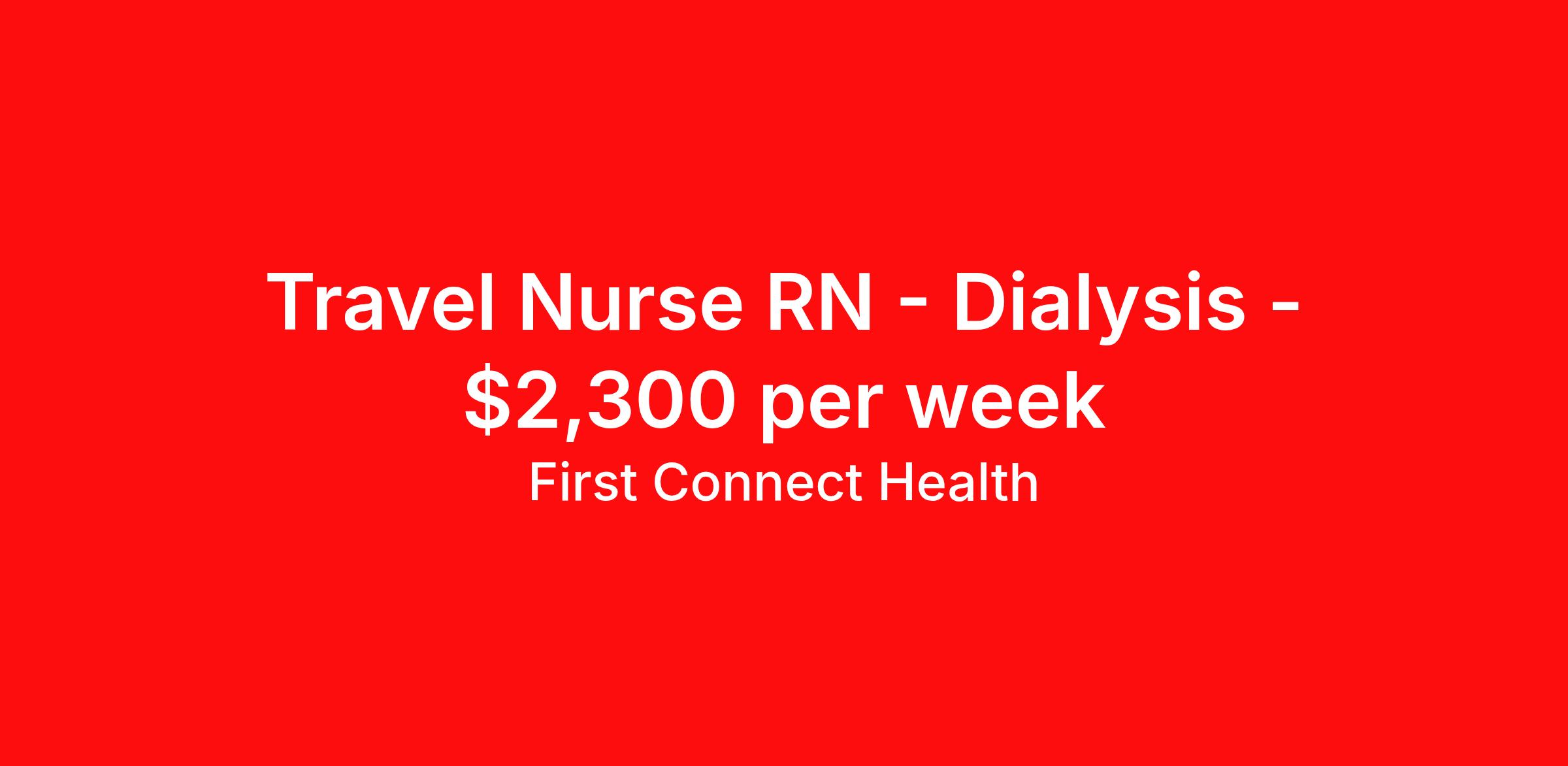 Travel Nurse RN - Dialysis - $2,300 per week