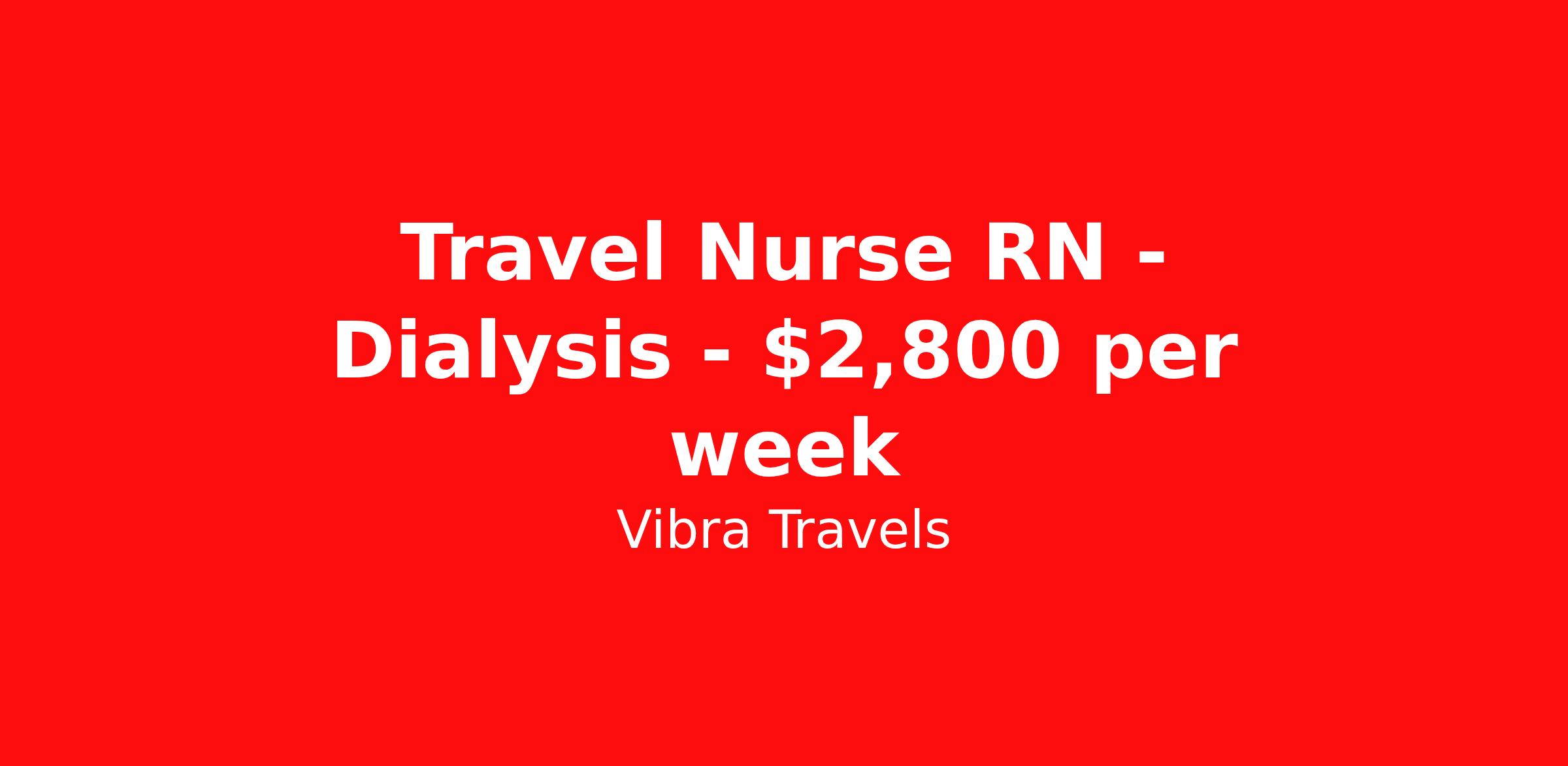 Vibra Travels is seeking a travel nurse RN Dialysis for a travel nursing job in Florence, Kentucky. Job Description & Requirements Specialty: Dialysis Discipline: RN Duration: 13 weeks 40 hours per week Shift: 8 hours, days Employment Type: Travel VIBRA TRAVELS is seeking a CORPORATE TRAVEL ACUTE CARE DIALYSIS RN to join our expanding network of healthcare professionals. We’re looking for dependable, detail-focused travelers with experience working in acute care or acute rehab hospital settings. If you're ready to assist in life-changing procedures while traveling the country, this is your opportunity! Facility Type: Dialysis Clinic Unlike working for agency after agency, with our travel program, you get to work for a company: • Work with 1 recruiter from start to finish and assignment to assignment • Local and Non-local positions available • Competitive hourly rate in addition to tax-free stipend (if applicable) • No pay cuts mid-contract • Referral bonus (up to $1000 per referral!) • License reimbursement if traveling to new state where new license is required Minimum Qualifications: • One (1) year of recent dialysis experience in an outpatient dialysis clinic required. • Current, valid, and active license to practice as a Registered Nurse in the state of employment required. • BLS certification from either AHA or American Red Cross required. • Current, valid, and active driver’s license required. • Ability to travel using publicly available air and ground transportation. Certificates, Licensures, Registrations • Current, valid, and active license to practice as a Registered Nurse in the state of employment required. Current BLS certification from AHA or American Red Cross required. • Other certifications may be required by the client. Ex: CDN (Certified Dialysis Nurse), CNN (Certified Nephrology Nurse), CHN (Certified Hemodialysis Nurse), CPDN (Certified Peritoneal Dialysis Nurse) Vibra Travels Job ID 20260319-31. Pay package is based on 8 hour shifts and 40 hours per week (subject to confirmation) with tax-free stipend amount to be determined. About Vibra Travels Regardless of the placement you’re seeking, you’ll experience the same great benefits when choosing Vibra Travels for your next contract. White-glove service, every step of the way: At Vibra Travels, we believe in providing top-notch service to our travel nurses. From the moment you first contact us, you’ll experience a level of support and care that sets us apart from the rest. Your recruiter, your partner: Unlike other travel nursing agencies, we believe in building one-on-one relationships with our clinicians. Your dedicated recruiter will be your advocate, guiding you through the entire process and ensuring your needs are met. Clinical support at your fingertips: We understand that being a traveler can sometimes be challenging. That’s why we have a dedicated clinical support team available to answer any questions or concerns you may have during your assignments. Nationwide placements, endless opportunities: With Vibra Travels, you’ll have access to placements across the nation. Whether you’re looking for an acute care, rehabilitation, critical care, or behavioral health hospital, we have opportunities waiting for you in every corner of the country. Join us today and experience traveling done different! Benefits Holiday Pay License and certification reimbursement Medical benefits Referral bonus