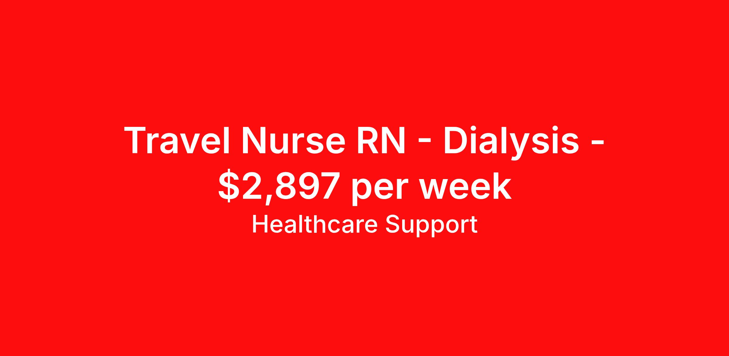 Healthcare Support is seeking a travel nurse RN Dialysis for a travel nursing job in Cranston, Rhode Island. Job Description & Requirements Specialty: Dialysis Discipline: RN Start Date: 03/30/2026 Duration: 50 weeks 36 hours per week Shift: 12 hours Employment Type: Travel Now Hiring: Travel Nurse Educator – Dialysis (5008X Trainer) Nationwide Travel | 36 hrs/week | Paid Training Included 50-Week Contract | No Direct Patient Care | RN Role Be part of a groundbreaking national project! We're seeking experienced Dialysis RNs to join a high-impact team rolling out the cutting-edge 5008X dialysis machine in clinics across the U.S. Your Role As a Travel Nurse Educator, you'll: Deliver hands-on training to clinic staff (RNs, LPNs, Techs) on the 5008X machine Travel in 3-week deployment cycles to different clinics nationwide Provide on-site support during live treatments (no direct patient care) Promote safe and effective machine use through collaboration and coaching What You’ll Get 50-week renewable contract – extensions likely! Full paid training (first 6 weeks) Dedicated recruiter to support you throughout your journey Schedules released 2 months in advance – plan with confidence What You’ll Need Active RN license (multi-state highly preferred) 1 year of dialysis RN experience (minimum 1 year in the past 3 years) Current BLS certification Willingness to travel full-time and lead hands-on training Compensation Weeks 1–6 (Training Period) $54/hour, travel stipends included if currently traveling. Varies by location EXAMPLE Pay Package Week 7 and Beyond (Travel Assignments Pay Varies By Location) Taxable Weekly Pay: $1,089 (W2) Non-Taxable Weekly Stipends: $1,869 Total Weekly Pay: $2,958 Healthcare Support Job ID 485742. Pay package is based on 12 hour shifts and 36 hours per week (subject to confirmation) with tax-free stipend amount to be determined. Posted job title: rn chronic dialysis About Healthcare Support Healthcare Support excels at providing a streamlined and red-carpet experience for our travelers. Whether you are a nurse, a therapist, or an allied health professional, our goal is to connect you with top-rated facilities throughout the country and get you on the road to your next adventure. We leverage 20 years of relationships with the industry’s most respectable companies across all 50 states, both through direct client partnerships and via national MSP programs. From health systems and hospitals to specialty clinics and post-acute facilities, you can work where you want to work and go where you want to go. Not only does HealthCare Support reimburse for relocation and travel costs on your first check, but we also offer license and certification reimbursements required for your assignments so that you can focus on building your career. During your assignment, you’ll have access to medical benefits, 24/7 support from our Clinical Advocacy Team, and a travel team with stateside operations. Your travel team will include a designated credentialing expert to help you navigate every step of the on-boarding process, a payroll specialist who you can communicate with directly, and a skilled recruiter who takes the time to understand your needs and works hard to find the right position for you. Don’t get lost in the shuffle of another overblown staffing agency. Choose HealthCare Support to be your trusted partner that you can rely on for all your travel assignments. We can’t wait to hear about the amazing adventures you’ll have! Pst! Ask us about our Direct Hire Opportunities! Benefits License and certification reimbursement Medical benefits Dental benefits Mileage reimbursement Employee assistance programs Referral bonus 401k retirement plan Holiday Pay Weekly pay