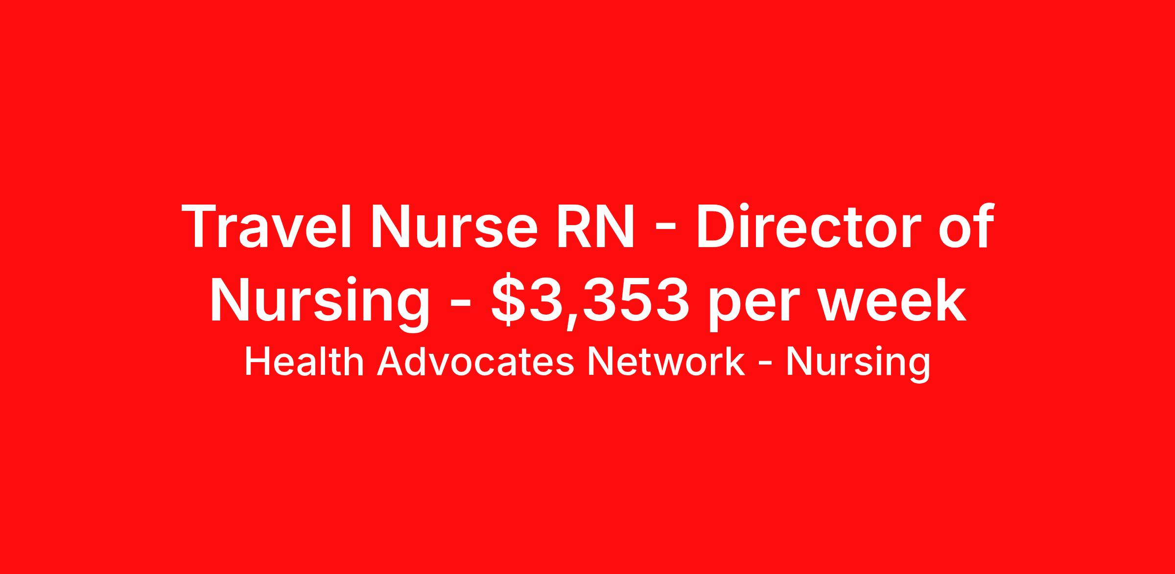 Health Advocates Network - Nursing is seeking a travel nurse RN Director of Nursing for a travel nursing job in Grand Junction, Colorado. Job Description & Requirements Specialty: Director of Nursing Discipline: RN Start Date: ASAP Duration: 26 weeks 36 hours per week Shift: 12 hours, rotating Employment Type: Travel RN –Director Labor and Delivery L&D Registered Nurse - Health Advocates Network is urgently hiring Labor and Delivery L&D RNs with at least 4 years of recent experience! IMMEDIATE STARTS! Travel packages up to $3353 weekly Director of L&D Shift: 8 hour DAY and NIGHT shifts available 26 week contracts available Specialty: Labor and Delivery L&D Registered Nurse (RN) Requirements: Active CO or compact State Registered Nurse License Valid BLS,ACLS,NRP Graduate of an Accredited School of Nursing Additional certifications may be required Benefits We Offer: Competitive pay rates, Referral Bonus, Medical, Dental and Vision. Travel reimbursement and per diem allowances, Employee discounts, educational opportunities, and more! To apply for this job now or to find out more about other opportunities with Health Advocates Network, Inc. reply to this posting, contact us at or call/text XXX-XXX-XXXX. We can provide you unparalleled access to exciting career opportunities. Health Advocates Network, Inc . is an equal opportunity employer. All qualified applicants shall receive consideration for employment without regard to any legally protected basis protected by applicable federal or state law except where a bona fide occupational qualification applies. Refer a Registered Nurse for a $XXX.00 bonus opportunity! HANStaff Job ID 521104. Pay package is based on 12 hour shifts and 36 hours per week (subject to confirmation) with tax-free stipend amount to be determined. Posted job title: RN - Director of Nursing About Health Advocates Network - Nursing Health Advocates Network was founded on the basis of a shared aspiration, to improve the way healthcare staffing is done. We are a company established and led by nurses. Our flexible approach enables us to develop solutions customized to your specific needs. From short- and long-term travel contracts to local and per diem assignments and more, we are here to get you to your next adventure! By solving challenges, providing the best placements, and advocating for you, we stand to help you thrive and pave the path forward in your career. Click on the videos below to learn more about our values!