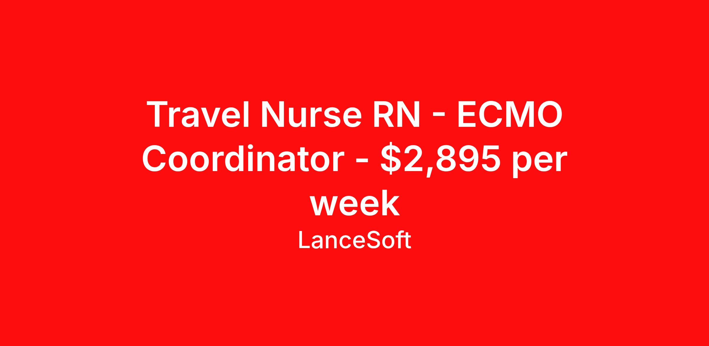 Travel Nurse RN - ECMO Coordinator - $2,895 per week