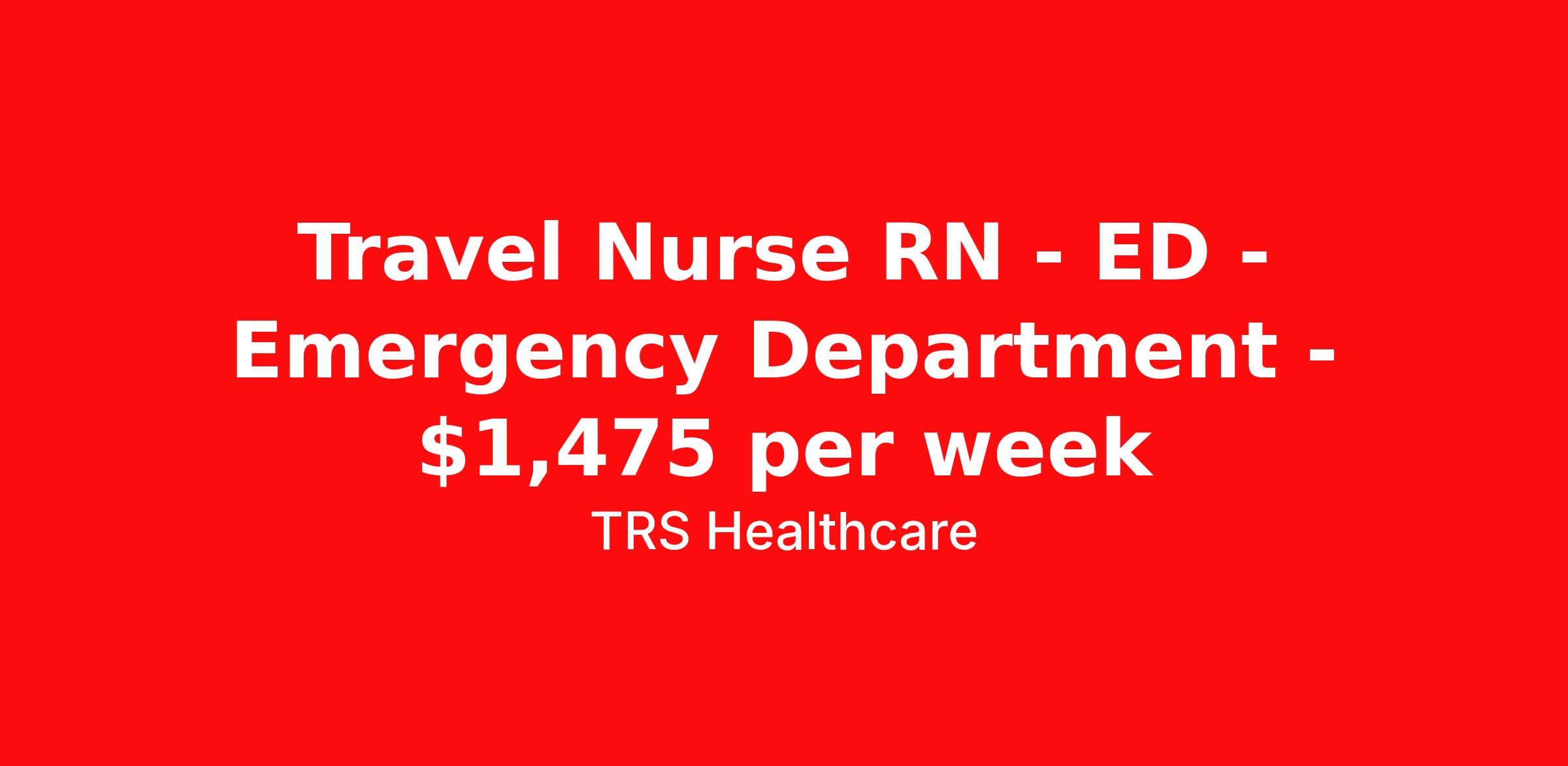 Travel Nurse RN - ED - Emergency Department - $1,475 per week