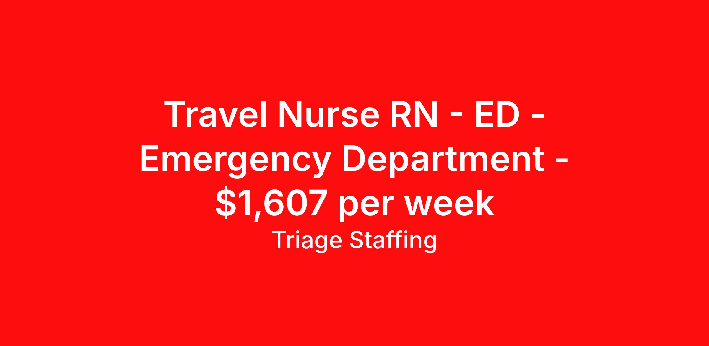 Travel Nurse RN - ED - Emergency Department - $1,607 per week