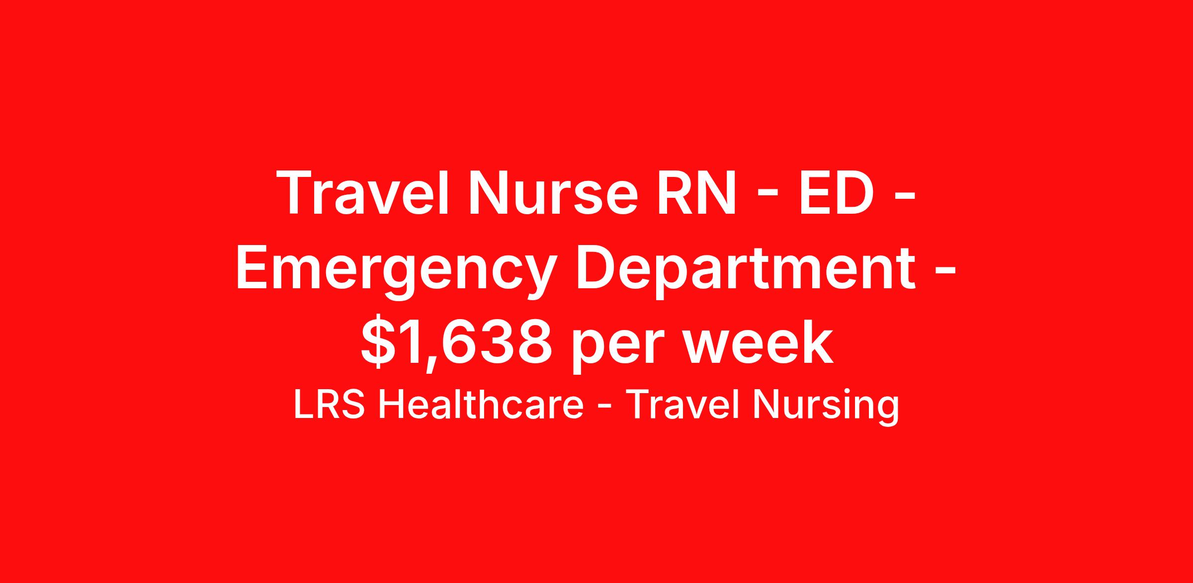 LRS Healthcare - Travel Nursing is seeking a travel nurse RN ED - Emergency Department for a travel nursing job in Austell, Georgia. Job Description & Requirements Specialty: ED - Emergency Department Discipline: RN Start Date: ASAP Duration: 13 weeks 36 hours per week Shift: 12 hours, nights Employment Type: Travel LRS Healthcare - Travel Nursing Job ID 74-67617. Pay package is based on 12 hour shifts and 36 hours per week (subject to confirmation) with tax-free stipend amount to be determined. About LRS Healthcare - Travel Nursing LRS Healthcare can lend a hand to take your career to new heights and places. As an industry leader in healthcare staffing, we work to connect you with jobs at top of the line facilities in the locations you’ve always wanted to live and visit. LRS is truly a full service medical staffing agency, so we take care of everything from housing and travel expenses to your itinerary, too. We handle it all because we want to be with you throughout your journey – not just your next placement. As a medical staffing agency that fosters long relationships with their employees, we’re determined to help amplify your personal and career growth through placement. We identify both temporary and permanent positions for candidates, and even some temp-to-perm positions that begin as 13-week programs. We have many positions available across the country, so let's discuss what would be a good fit for you! Benefits: Medical, Dental, and Vision Short-Term Disability Long-Term Disability Life Insurance 401(k) Certification & License Reimbursement Refer-a-friend Bonus Program Direct Deposit - Weekly 24-Hour Support Benefits Medical benefits Life insurance 401k retirement plan License and certification reimbursement Referral bonus Weekly pay