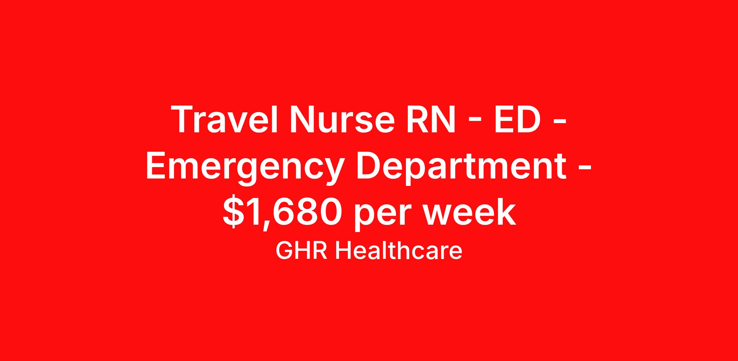Travel Nurse RN - ED - Emergency Department - $1,680 per week