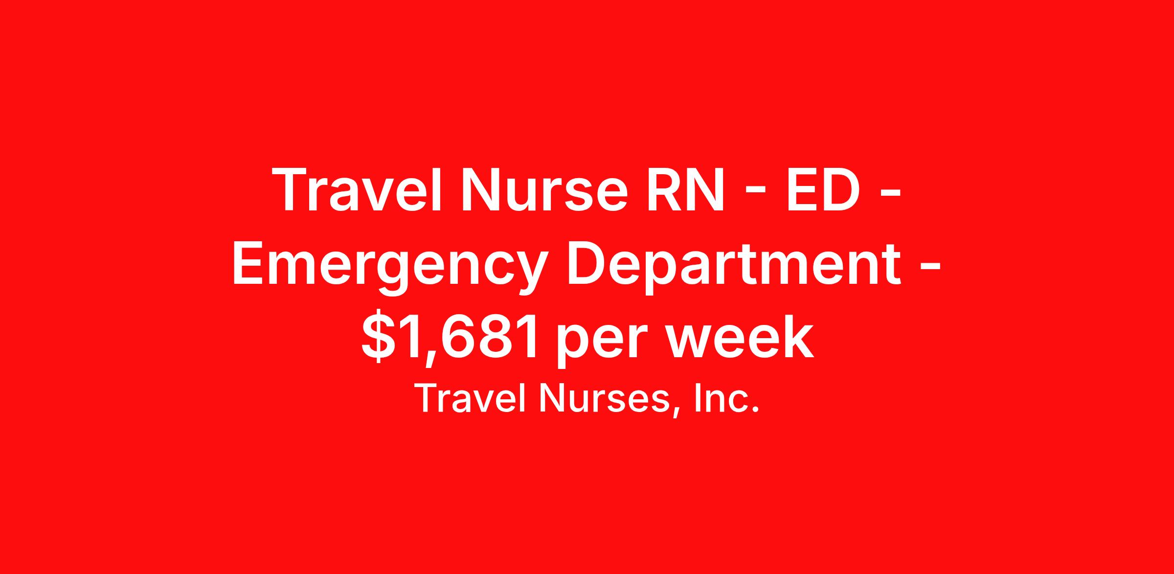 Travel Nurses, Inc. is seeking a travel nurse RN ED - Emergency Department for a travel nursing job in Henderson, North Carolina. Job Description & Requirements Specialty: ED - Emergency Department Discipline: RN Start Date: 04/22/2026 Duration: 13 weeks 36 hours per week Shift: 12 hours Employment Type: Travel Travel Nurses, Inc. Job ID 309792. Pay package is based on 12 hour shifts and 36 hours per week (subject to confirmation) with tax-free stipend amount to be determined. Posted job title: LPNT East Travel RN: ER (7P-7A) Maria Parham Henderson, NC About Travel Nurses, Inc. Travel Nurses, Inc. is a leading healthcare staffing agency that provides healthcare professionals with opportunities to work across the country. Founded by nurses in 1988, TNI has more than 30 years of experience in the industry. The agency initially focused on staffing operating room settings in the MidSouth. However, this quickly evolved to encompass all nursing specialties and allied health fields nationwide. At the heart of our mission is a profound respect for nurses, whom we consider the cornerstone of healthcare. This acknowledgment extends beyond the nursing profession alone. Travel Nurses, Inc. now proudly embraces a wide array of healthcare professionals, recognizing their crucial roles in our collective mission. Travel Nurses, Inc. is dedicated to providing comprehensive support and opportunities that will help facilitate complete career mobility in the healthcare field. Our commitment to transparency ensures that all professionals, not just nurses, can confidently accept any assignment without financial uncertainties. We prioritize our professionals’ well-being with comprehensive benefits packages, including day-one healthcare coverage, competitive salaries, bonuses and incentives. This underscores our unwavering commitment to offering the best possible rewards and support for all the professionals we serve. Benefits Weekly pay Continuing Education 401k retirement plan Wellness and fitness programs Mileage reimbursement Referral bonus Employee assistance programs Medical benefits Dental benefits Vision benefits Benefits start day 1 License and certification reimbursement Life insurance Retention bonus