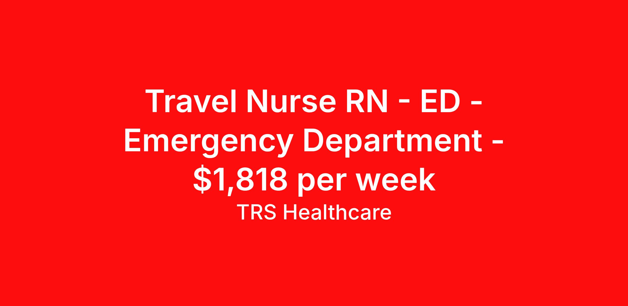 Travel Nurse RN - ED - Emergency Department - $1,818 per week