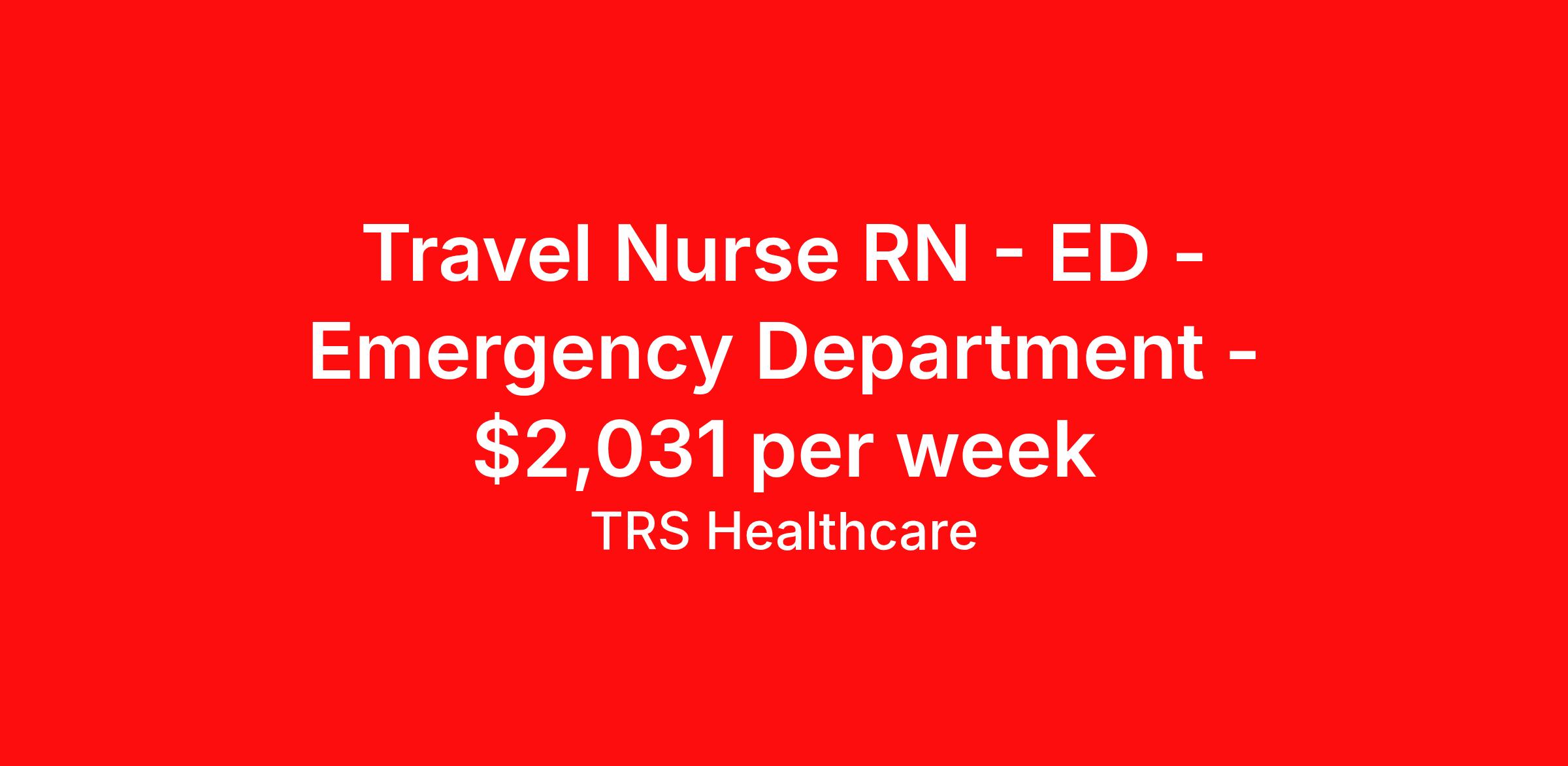 Travel Nurse RN - ED - Emergency Department - $2,031 per week
