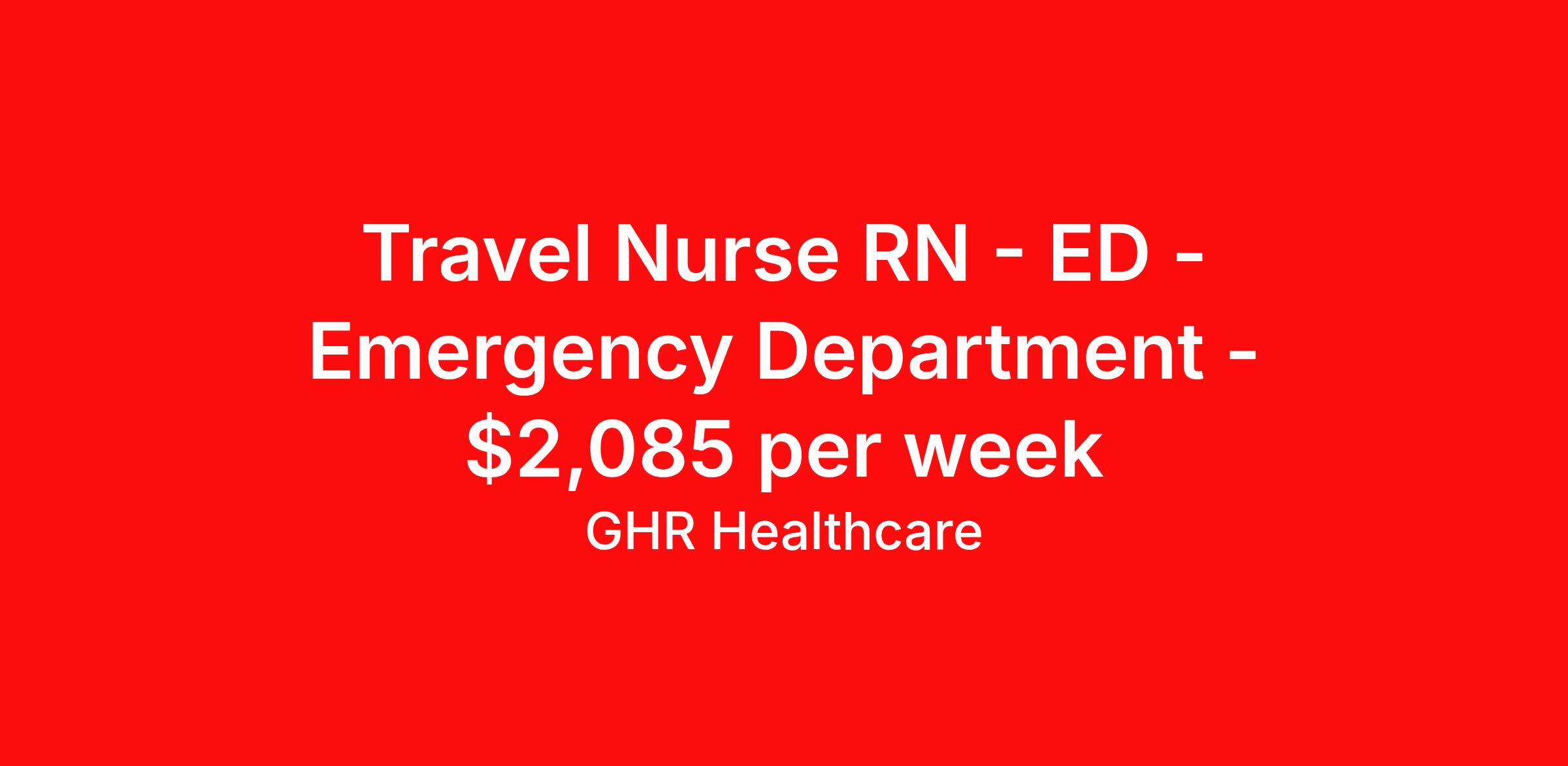 Travel Nurse RN - ED - Emergency Department - $2,085 per week