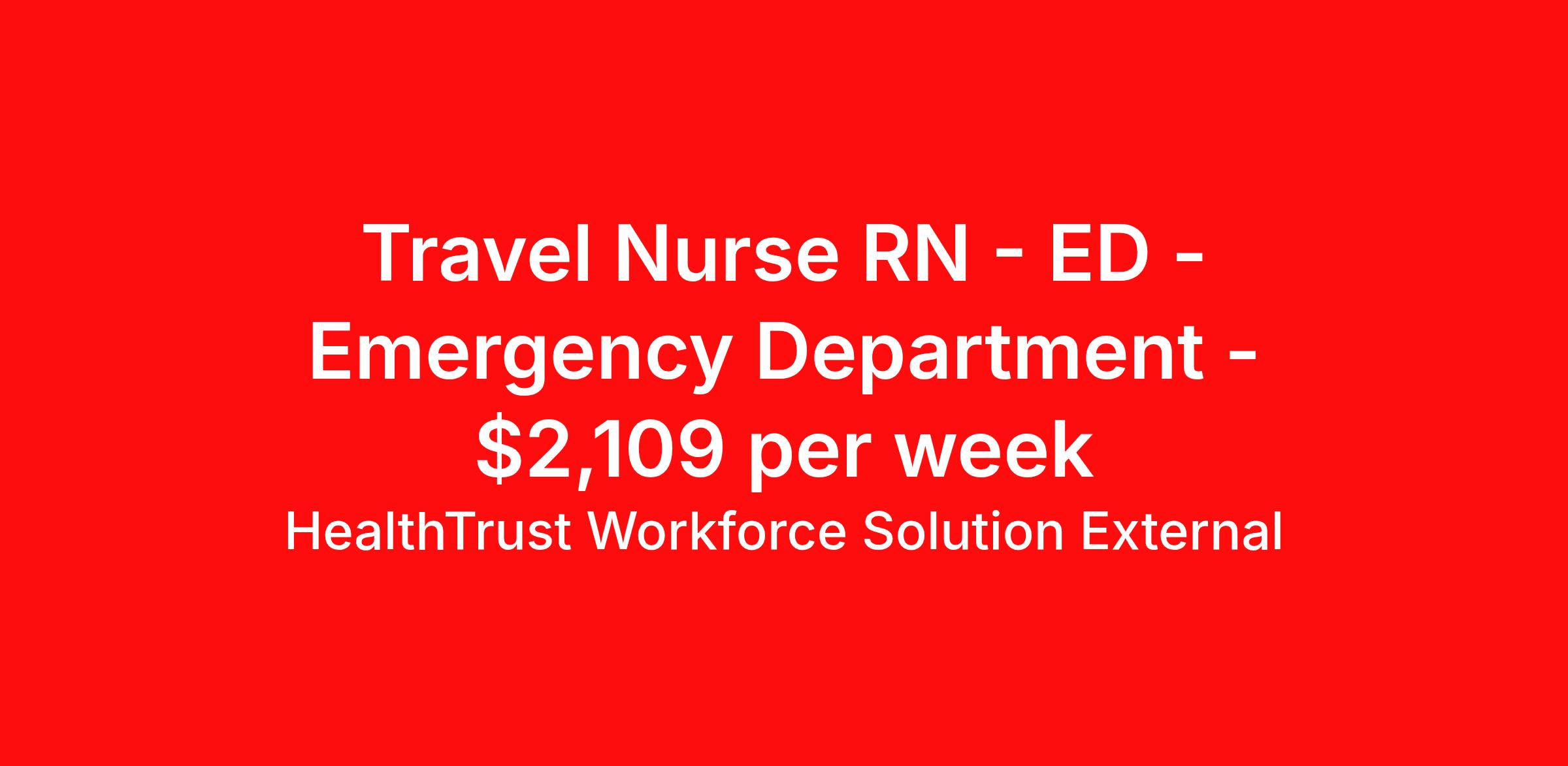Travel Nurse RN - ED - Emergency Department - $2,109 per week