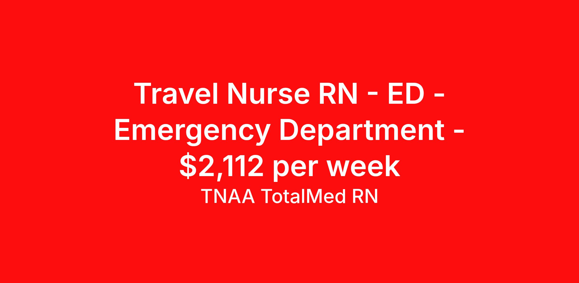 TNAA TotalMed RN is seeking a travel nurse RN ED - Emergency Department for a travel nursing job in Saint Albans, Vermont. Job Description & Requirements Specialty: ED - Emergency Department Discipline: RN Start Date: ASAP Duration: 13 weeks 36 hours per week Shift: 12 hours, nights Employment Type: Travel We're looking for Emergency Room RNs for an immediate travel nurse opening in Saint Albans, VT. The right RN should have 1-2 years recent acute care experience. Read below for more requirements. As an ER Travel Nurse, you will work with a diverse team of caregivers to appropriately evaluate, triage and implement care using correct procedures and physician instructions. RNs should have experience and skill caring for patients in a fast-paced, urgent and emergency environment. Emergency Room RNs will perform minor medical operations, advise patients and family on illnesses or injuries, and plan long-term care needs. Other responsibilities as an ER Travel Nurse include documenting medical history, checking for any allergies patients might have, obtaining patient vital signs, and monitoring patients' emotional and physical well-being. As an ER Travel Nurse, you should be prepared to perform the following tasks: Provide basic bedside care. Clean and bandage wounds. Provide IV therapy. Maintain supplies and medical equipment. Report suspected abuse to appropriate agencies. ER Travel Nurses should be able to stand and walk for long periods of time, as well as bend, lean and stoop without difficulty. RNs should be able to easily lift 20 pounds. Moving or lifting of patients may require lifting of up to 50 pounds at times. Because of the fast-paced environment, Emergency Room RNs must possess good skills for coping with stress and be able to relate to people of all ages and backgrounds. Requirements*: ACLS, BLS, NIH, PALS, 3 Years * Additional certifications may be required before beginning an assignment. TotalMed Travel Job ID 1354880. Pay package is based on 12 hour shifts and 36 hours per week (subject to confirmation) with tax-free stipend amount to be determined. Posted job title: Emergency Room - ER RN - Travel Nurse About TNAA TotalMed RN TotalMed is a Top Ten, travel nursing and healthcare staffing agency with the mission of igniting purpose in healthcare. The organization staffs nurses, therapists, pharmacists, and other clinicians of all specialties in all 50 states. They offer local and travel jobs and match caregivers with the right organization to assist both facilities and patients. As an organization, they focus on putting highly-skilled staff into facilities to ensure adequate staffing for a better patient experience. TotalMed specializes in recruiting and placing healthcare professionals in travel, PRN, and permanent positions across the country in Nursing and Allied Health. Throughout 2020, the organization filled roles at even the most short-staffed facilities during the most challenging time in healthcare. By matching the right travel healthcare professional with the right organization, TotalMed continues to offer a lifeline to facilities and their patients. Benefits Weekly pay Guaranteed Hours Continuing Education 401k retirement plan Sick pay Wellness and fitness programs Referral bonus Employee assistance programs Medical benefits Dental benefits Vision benefits Benefits start day 1