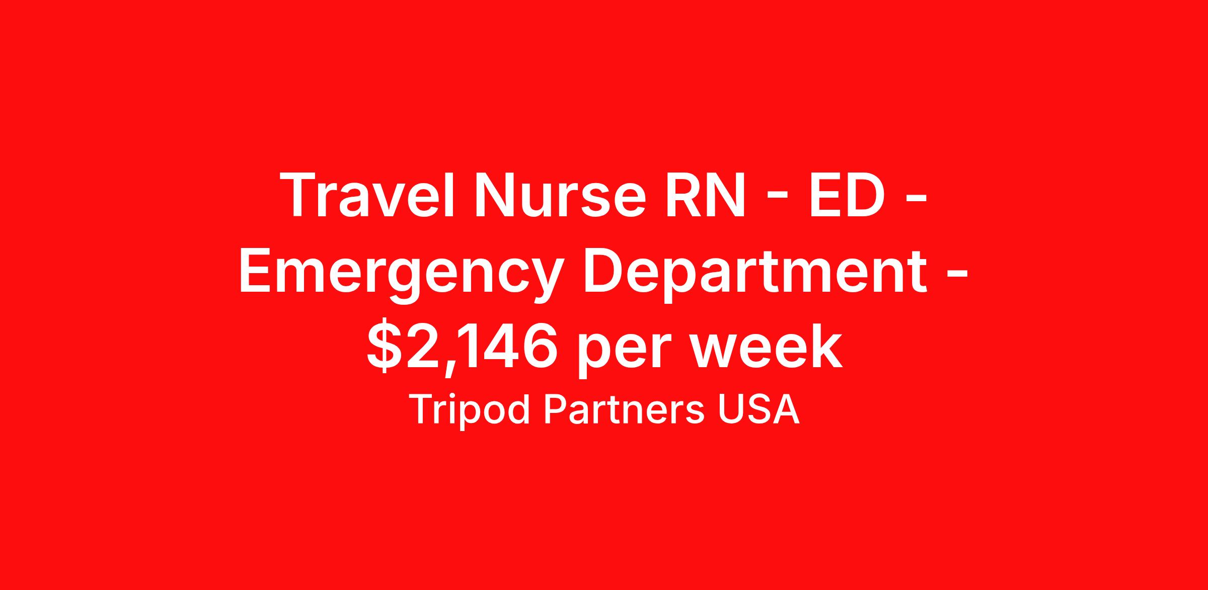 Tripod Partners USA is seeking a travel nurse RN ED - Emergency Department for a travel nursing job in Augusta, Georgia. Job Description & Requirements Specialty: ED - Emergency Department Discipline: RN Start Date: ASAP Duration: 13 weeks 36 hours per week Shift: 12 hours Employment Type: Travel Required Minimum Education: Associates Nursing or Diploma (Nurse) Nursing or Bachelors Nursing-Preferred Required Minimum License(s) and Certification(s): All certifications are required upon hire unless otherwise stated. BLS - Basic Life Support or ARC-BLS - Amer Red Cross Basic Life Support or BLS-I - Basic Life Support - Instructor RN - Reg Nurse (Single State) or RN-COMPACT - RN - Multi-state Compact PALS - Pediatric Adv Life Support or ARC-PALS - Amer Red Cross Pediatric Advanced Life Support or PALS-I - PALS - Instructor or PALS-P - PALS-Provisional (180 Days) within 180 Days TNCC - Trauma Nurse Core Course or ATCN - Adv Trauma Care for Nurses Cer or TNCC-P - Trauma Nurse Core Course - Provisional (18 Months) within 18 Months ACLS - Advanced Cardiac Life Support or ARC-ALS - Amer Red Cross Advanced Life Support or ACLS-I - ACLS - Instructor or ACLS-P - ACLS-Provisional (180 Days) within 180 Days Additional License(s) and Certification(s): Required Minimum Experience: Less than 1 year Experience with direct patient care Preferred Required Minimum Skills: Ability to read, write and speak English language, optimize the use of technology to support clinical care and holds basic computer skillsStrong interpersonal, collaborative skills along with customer service skills requiredAbility to function in a fast paced environment and respond to emergencies in using a decisive, composed and respectful mannerPossess excellent time management skillspractices nursing using evidence and analytical skills along with possessing strong critical thinking skills. Shift: Night (United States of America) Additional note: Night shift: 7P - 7:30A. Must be available to work varies days of the week. On call: as needed. Weekends: minimum every other weekend. Holidays: minimum 2 major, 2 minor. Tripod Partners USA Job ID 74. Pay package is based on 12 hour shifts and 36 hours per week (subject to confirmation) with tax-free stipend amount to be determined. About Tripod Partners USA Founded originally in London, England, in 2012 and steadily expanding its footprint across the globe (including Australia and other key markets), Tripod Partners USA established its U.S. headquarters in Austin, Texas, in December 2024. Since then, we have grown into a nationwide leader in healthcare staffing, partnering with various managed service providers and neutral vendors to serve all 50 states. As a Joint Commission-certified (JCC) aligned organization, we bring a tradition of British excellence and a commitment to quality care to the U.S. market. We offer a unique blend of global expertise and local insight, creating a thriving community of nurses and allied health professionals who trust us for their career journeys. Why Tripod Partners? Because we combine scale, dedication, and a personal touch to ensure our clinicians are supported, valued, and part of something bigger. Benefits Medical benefits Health savings account Dental benefits Vision benefits