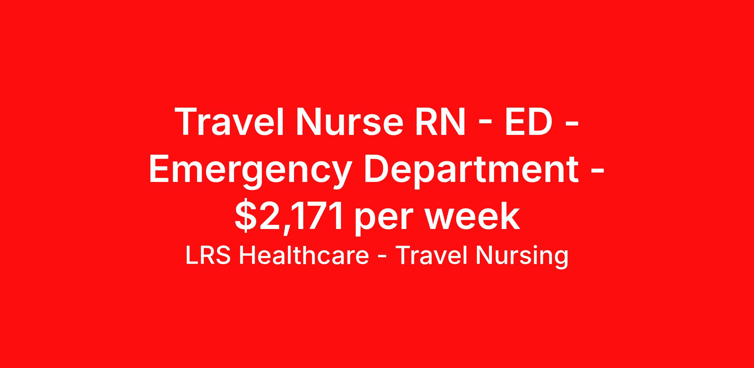 LRS Healthcare - Travel Nursing is seeking a travel nurse RN ED - Emergency Department for a travel nursing job in Antigo, Wisconsin. Job Description & Requirements Specialty: ED - Emergency Department Discipline: RN Start Date: 04/06/2026 Duration: 13 weeks 36 hours per week Shift: 12 hours, nights Employment Type: Travel LRS Healthcare - Travel Nursing Job ID 74-74635. Pay package is based on 12 hour shifts and 36 hours per week (subject to confirmation) with tax-free stipend amount to be determined. About LRS Healthcare - Travel Nursing LRS Healthcare can lend a hand to take your career to new heights and places. As an industry leader in healthcare staffing, we work to connect you with jobs at top of the line facilities in the locations you’ve always wanted to live and visit. LRS is truly a full service medical staffing agency, so we take care of everything from housing and travel expenses to your itinerary, too. We handle it all because we want to be with you throughout your journey – not just your next placement. As a medical staffing agency that fosters long relationships with their employees, we’re determined to help amplify your personal and career growth through placement. We identify both temporary and permanent positions for candidates, and even some temp-to-perm positions that begin as 13-week programs. We have many positions available across the country, so let's discuss what would be a good fit for you! Benefits: Medical, Dental, and Vision Short-Term Disability Long-Term Disability Life Insurance 401(k) Certification & License Reimbursement Refer-a-friend Bonus Program Direct Deposit - Weekly 24-Hour Support Benefits Medical benefits Life insurance 401k retirement plan License and certification reimbursement Referral bonus Weekly pay