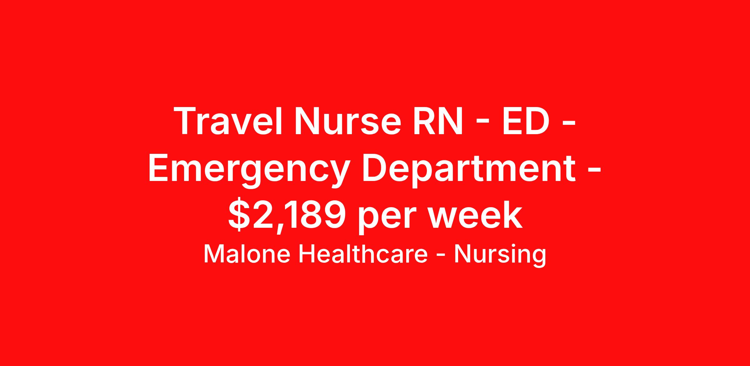 Malone Healthcare - Nursing is seeking a travel nurse RN ED - Emergency Department for a travel nursing job in Sioux City, Iowa. Job Description & Requirements Specialty: ED - Emergency Department Discipline: RN Start Date: 04/13/2026 Duration: 13 weeks 36 hours per week Shift: 12 hours, nights Employment Type: Travel About Malone Healthcare - Nursing With a commitment to providing a higher standard of service and experience in patient care, Malone Healthcare places expert nurses and allied health professionals in rewarding careers throughout the United States. As a leading healthcare staffing agency, Malone’s focus on compliance and integrity translates to a seamless experience for our team members and partner facilities. When you work with Malone Healthcare, you can rely on over 50 years of proven experience placing exceptional professionals in quality healthcare settings. Benefits Weekly pay Holiday Pay Guaranteed Hours Continuing Education 401k retirement plan Pet insurance Referral bonus Medical benefits Dental benefits Vision benefits License and certification reimbursement Life insurance