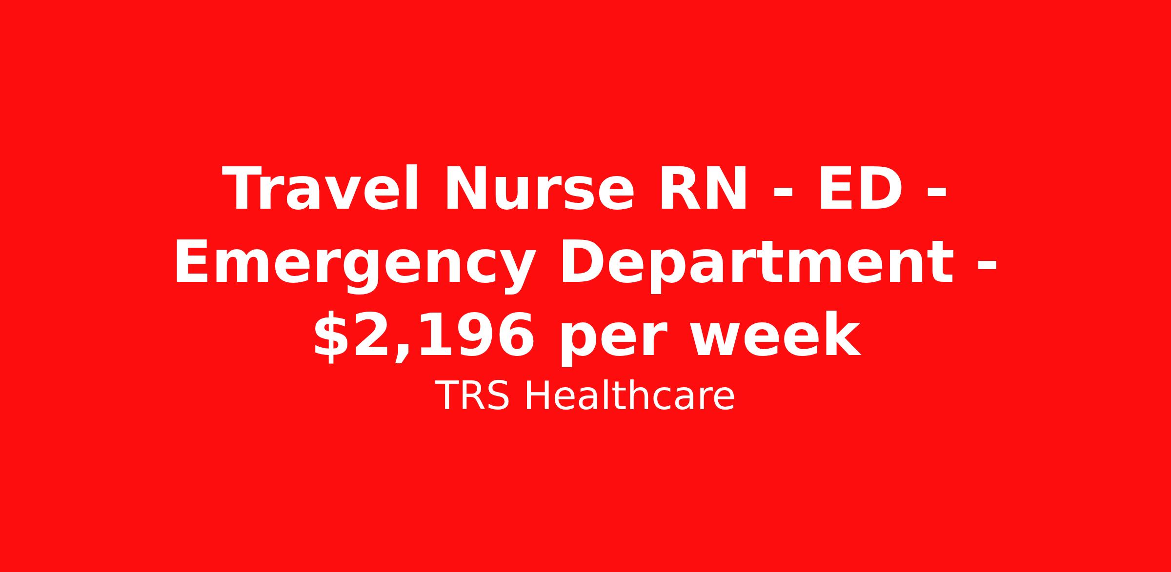 Travel Nurse RN - ED - Emergency Department - $2,196 per week