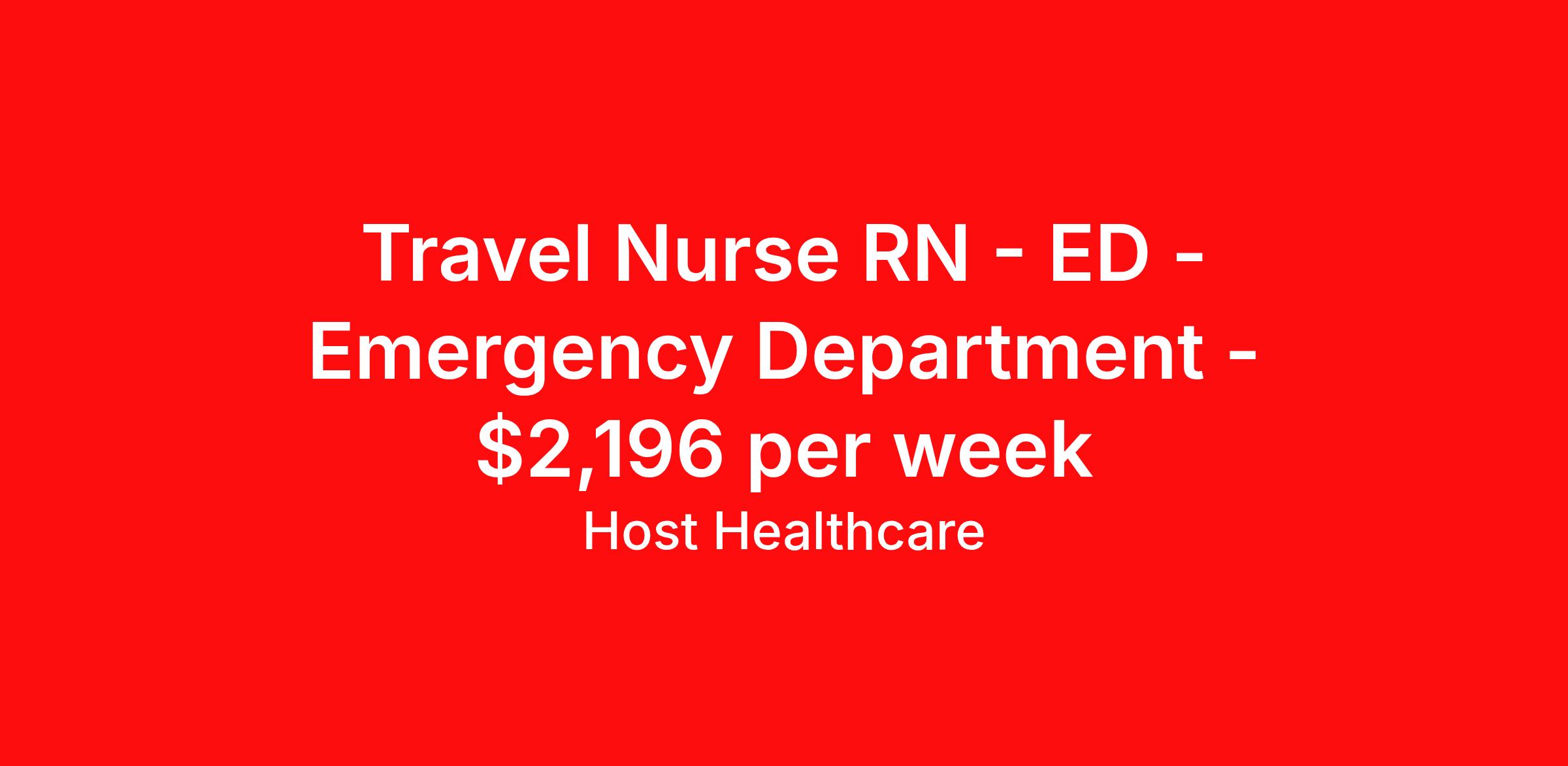 Travel Nurse RN - ED - Emergency Department - $2,196 per week
