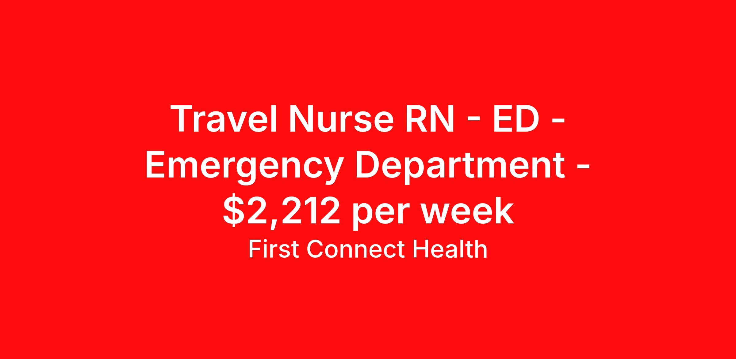 First Connect Health is seeking a travel nurse RN ED - Emergency Department for a travel nursing job in Hanford, California. Job Description & Requirements Specialty: ED - Emergency Department Discipline: RN Start Date: 04/13/2026 Duration: 13 weeks 36 hours per week Shift: 12 hours, nights Employment Type: Travel Night Shift/Must be Cerner trained/2 years Experience Education and Work Experience: Bachelor's Degree in Nursing (BSN): Preferred Acute care facility experience: Preferred Licenses/Certifications: Registered Nurse (RN) licensure in the state of practice: Required Cardiopulmonary Resuscitation (CPR) or Basic Life Support (BLS OR HS-BLS OR RQIBLS) certification: Required Department Specific License/Certifications: ACLS (Advanced Cardiovascular Life Support): Required Pediatric Advanced Life Support (PALS) or Healthstream Pediatric Advanced Life Support (HS-PALS) or RQIPALS: Required 37621 About First Connect Health At First Connect Health , we take pride in being a Joint Commission–certified healthcare staffing agency , headquartered in Newark, New Jersey. This prestigious certification is more than just a seal — it's a reflection of our commitment to excellence, safety, and quality in everything we do. By meeting the rigorous standards set by The Joint Commission, one of the most respected accrediting bodies in healthcare, we've demonstrated that our processes, compliance, and patient care standards are aligned with the highest levels of quality in the industry. But our dedication goes beyond certifications. Nurses choose First Connect Health because: ✅ Trust and Transparency: We foster honest communication, timely updates, and full transparency throughout your placement journey. ✅ Best Pay & Benefits: We offer industry-leading compensation packages, along with benefits that support your career goals. ✅ Flexibility & Choice: Whether you're seeking short-term assignments, long-term contracts, or local opportunities, we provide the flexibility to suit your preferences. ✅ Personalized Support: Our recruiters take the time to understand your needs, guiding you with care, respect, and responsiveness at every step. When you work with First Connect Health, you're not just another number — you're a valued professional. Join a team that’s focused on your success, your well-being, and your future in healthcare. Benefits Medical benefits Sick pay 401k retirement plan Weekly pay Referral bonus